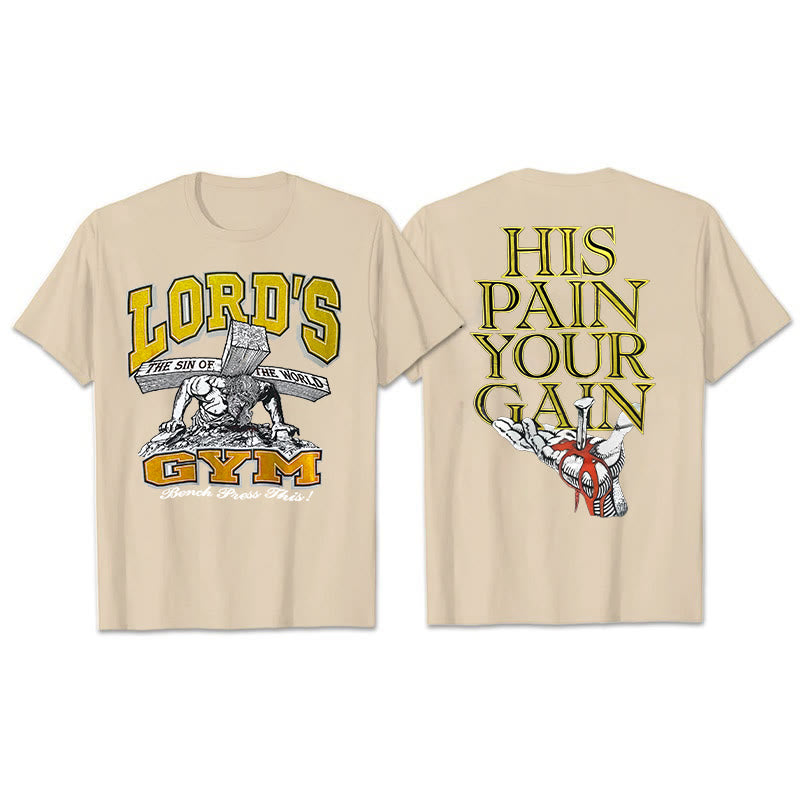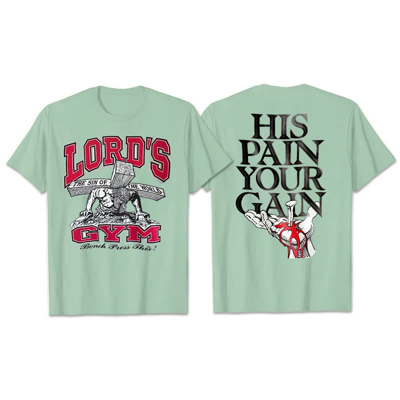 Auf der Rückseite dieses T-Shirts sind die markanten Großbuchstaben „HIS PAIN YOUR GAIN“ zu sehen, die die tiefgründige Lehre von Jesu Christi Leiden und Erlösung vermitteln. Im Muster unten verstärkt ein von einem Nagel durchbohrtes Herz das Bild von Opfer und Erlösung zusätzlich. Das Tragen dieses T-Shirts ist nicht nur ein frommes Glaubensbekenntnis, sondern auch eine Erinnerung an uns selbst, dass wir durch Christi Leiden Erlösung und Wiedergeburt erlangen und uns in unserem täglichen Leben stets an diese heilige Gnade erinnern können.