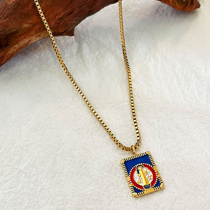 Moderne Stil bunte St. Benedikt Square Medal Anhänger Halskette