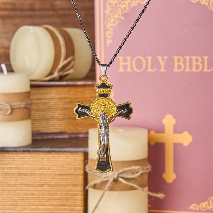 Halskette mit mehrfarbigem Kruzifix-Anhänger im klassischen Stil mit göttlichem Schutz