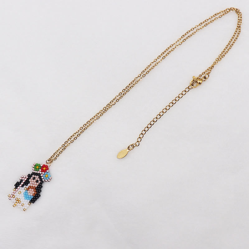 Mit dieser Halskette zeigen Sie Ihren Glauben auf besondere und freudige Weise. Ob beim Kirchenbesuch, im Alltag oder für einen besonderen Anlass – die Cartoon-Heiligen-Perlenkette verleiht Ihrem Outfit einen Hauch von Spiritualität. - Handgefertigter Charme
