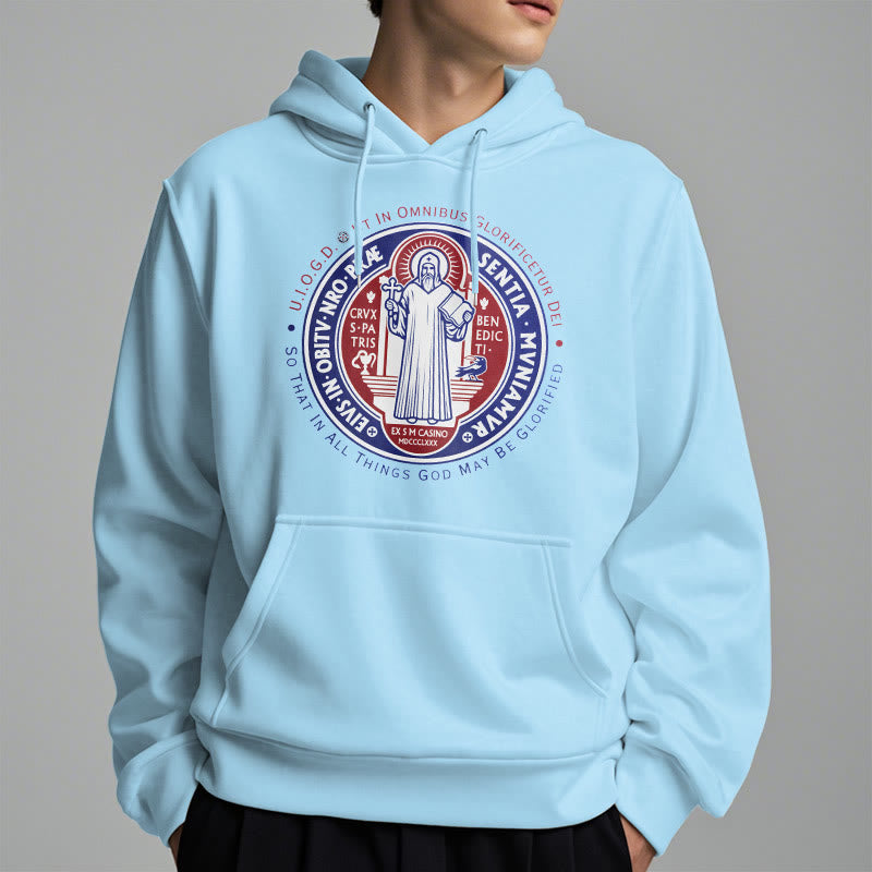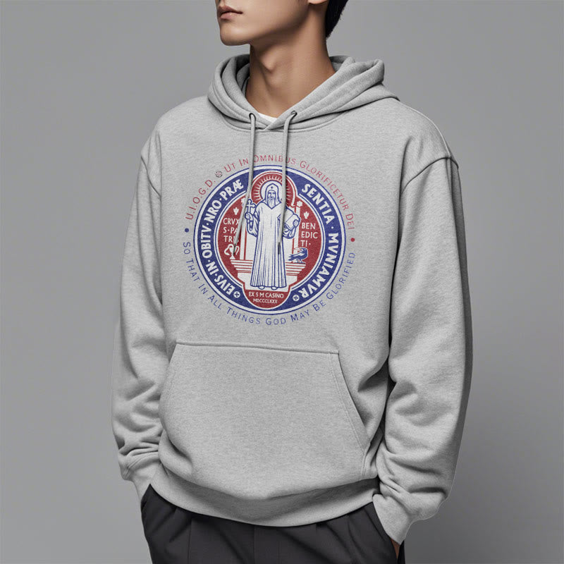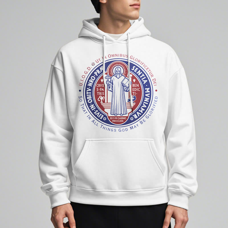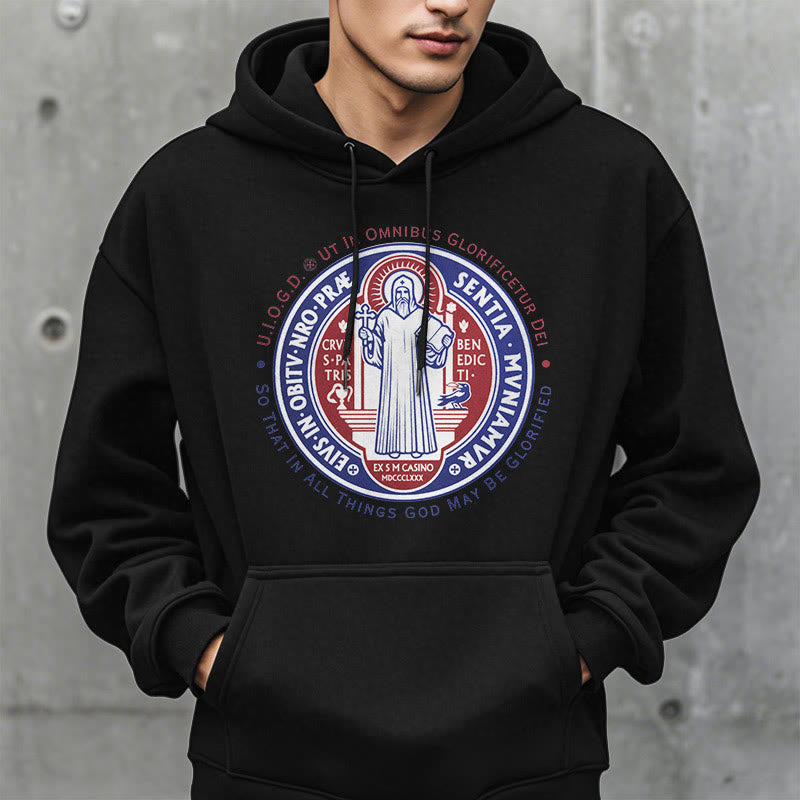 • Zeigen Sie Ihren Glauben mit dem Hoodie „St. Benedict Medal“