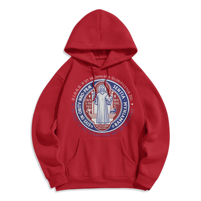 Christianartworkshop Klassischer farbiger Stil St. Benedikt-Medaillenemblem Fleece-gefütterter Polyester-Kapuzenpullover - Rot - 2XL - image 35