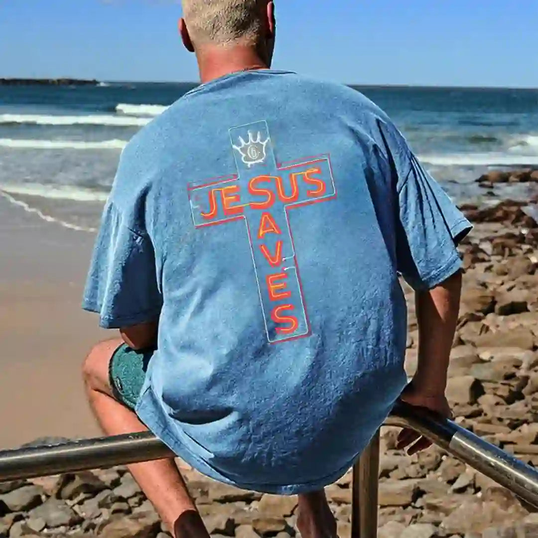 Wir präsentieren das „ Jesus Saves Cross Graphic T-Shirt “: Ein stilvolles und eindrucksvolles T-Shirt, das Ihren spirituellen Glauben und Ihre Hingabe unterstreicht. Dieses Kurzarm-T-Shirt aus hochwertigem, bequemem und strapazierfähigem Stoff ist perfekt für den Alltag.