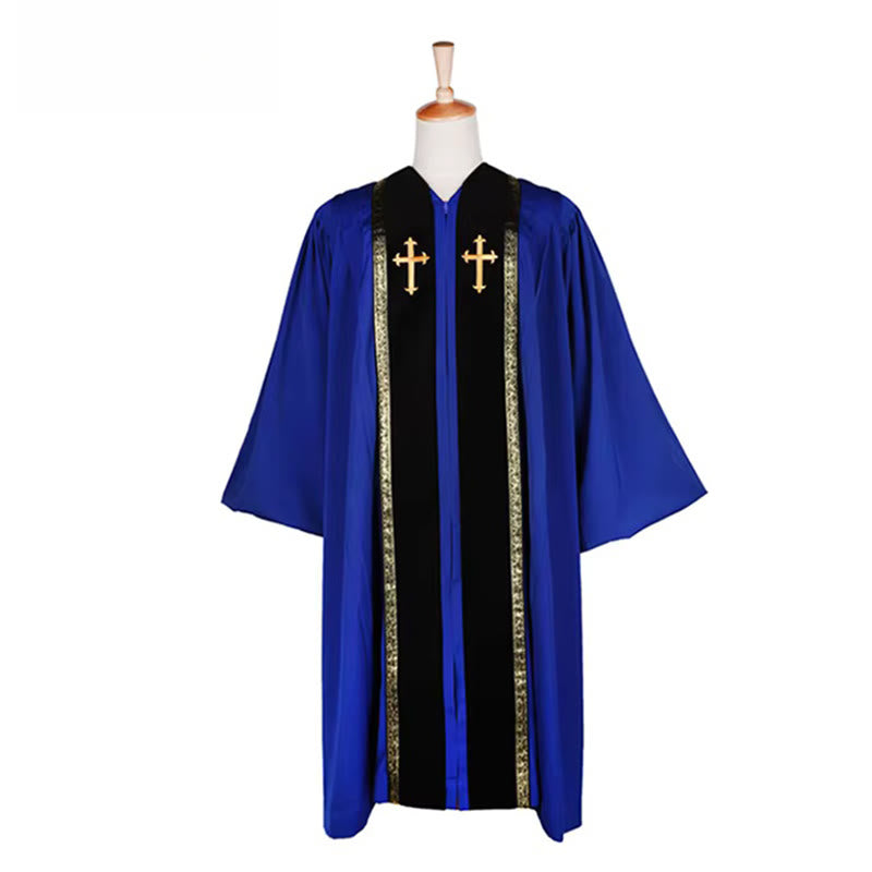 Wählen Sie feierliches Schwarz, Osterweiß, feuriges Rot oder himmlisches Blau – jedes gekrönt mit einem glänzenden Kreuz, das Christus als König der Könige verkündet (Offenbarung 19:16).