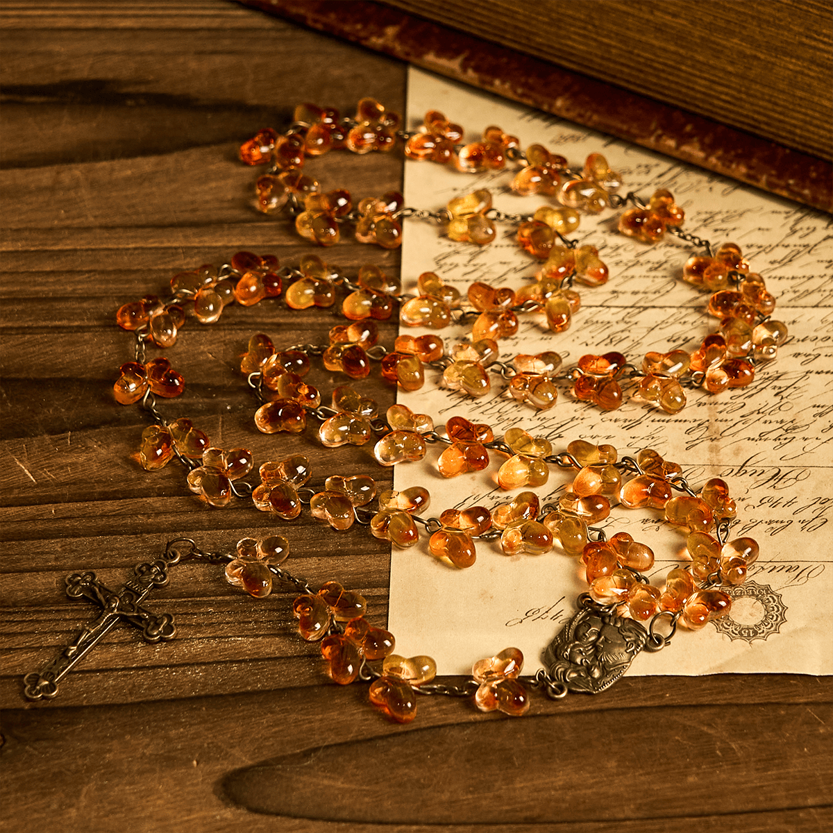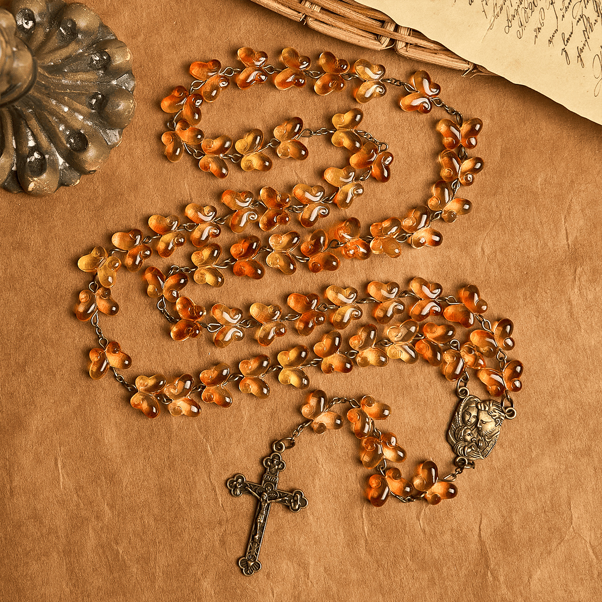 Dieser Rosenkranz ist mehr als nur ein Gebetsaccessoire. Er ist eine Brücke zwischen spiritueller Verbindung und dem Charme vergangener Epochen sowie der Schönheit der herbstlichen Farbpalette der Natur. - Perfekt zum Beten, Verschenken und Feiern von Glauben und Vintage-Stil