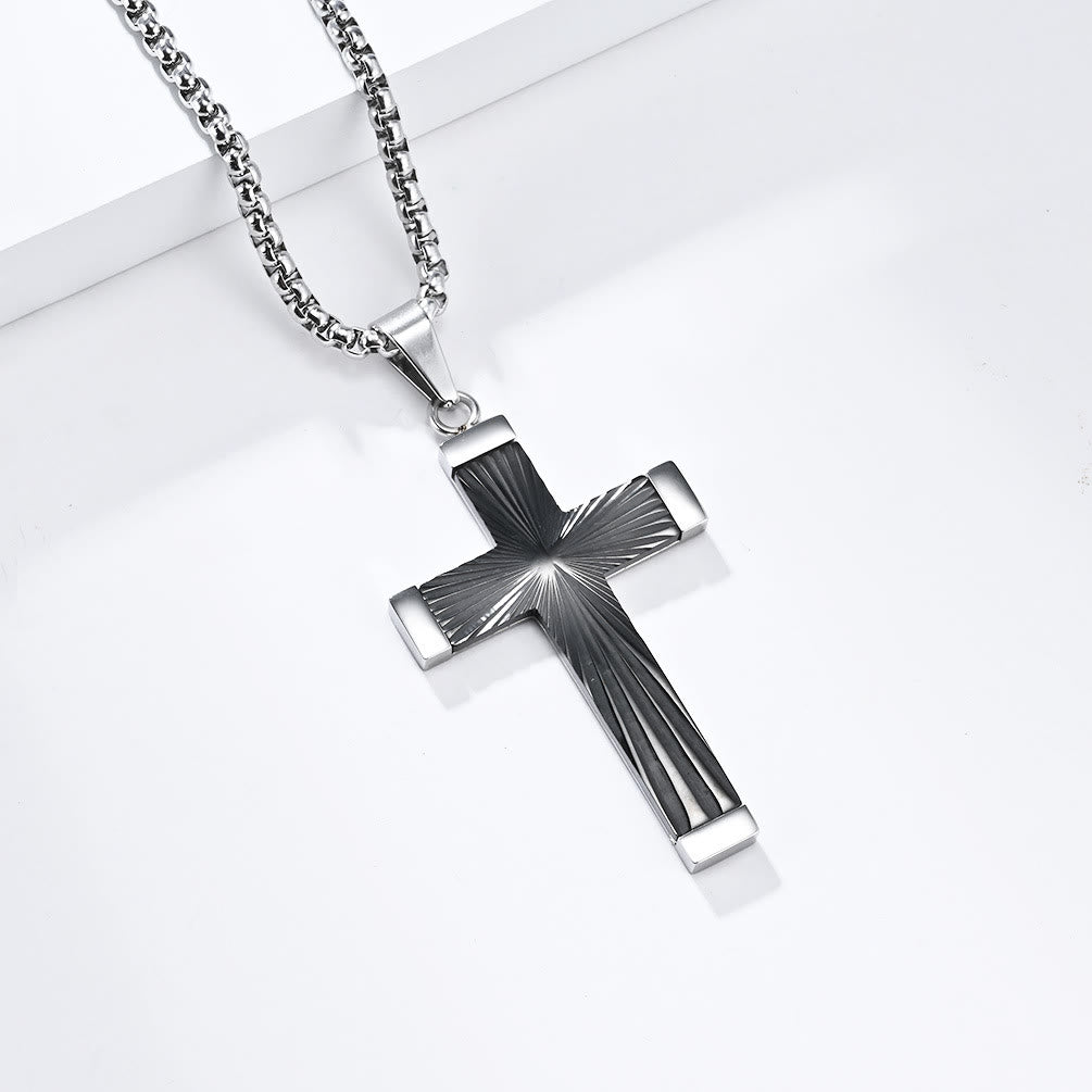 Die polierte Metalloberfläche – in Gold, Silber oder Schwarz – verleiht dem Kreuz einen klaren, modernen Reiz, während das strahlende Linienmuster das beständige Licht des Glaubens heraufbeschwört. - Getragen als Leuchtfeuer des Glaubens, gelebt als tägliche Inspiration