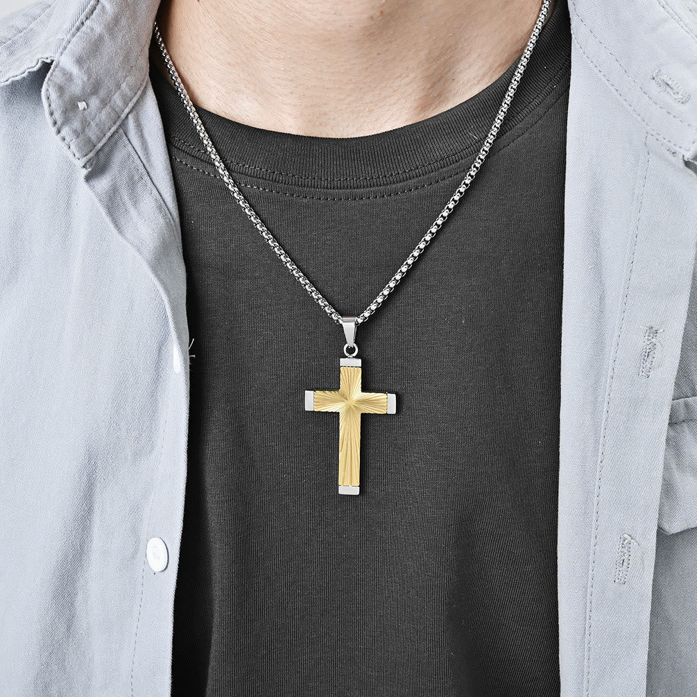 Wenn Sie diese Halskette tragen, wird die kühle Berührung der metallischen Farbtöne auf Ihrer Haut zu einer Erinnerung an spirituelle Klarheit. - Ein Kreuz, geschaffen für moderne Gläubige