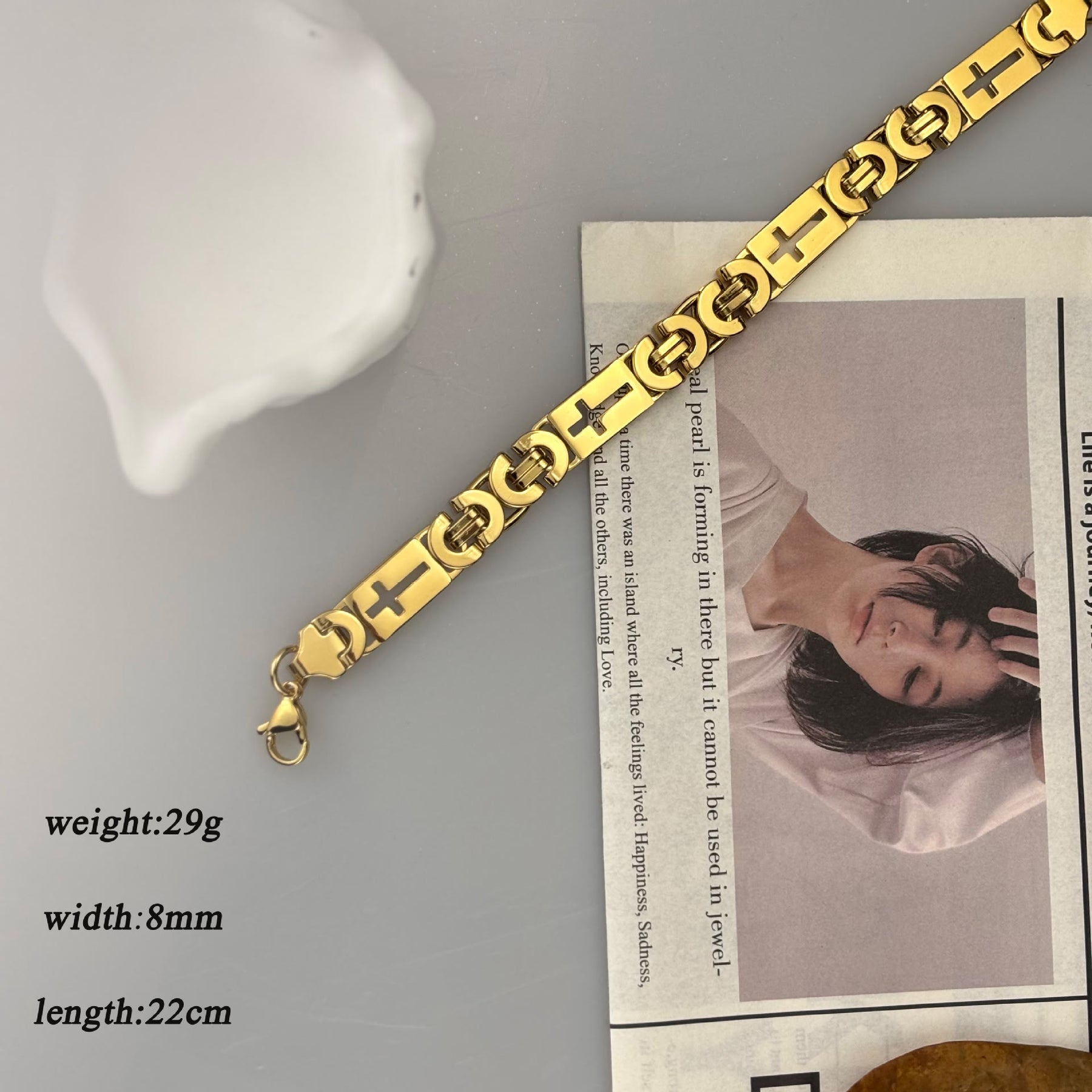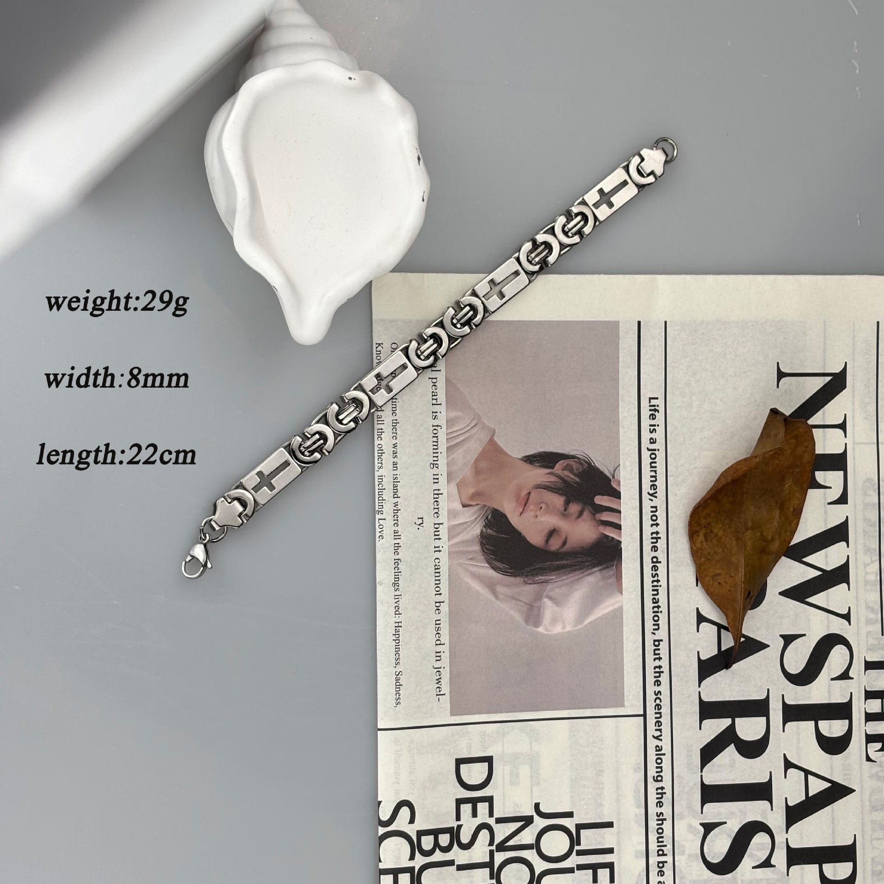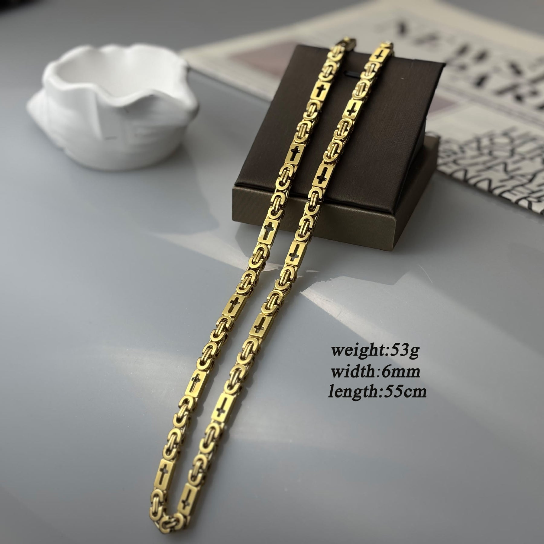 Die polierte zweifarbige Metalloberfläche verleiht der Kette ein klares, modernes Aussehen, während die wiederholten Kreuzdetails die uralte Geschichte von Glauben und Ausdauer erzählen.