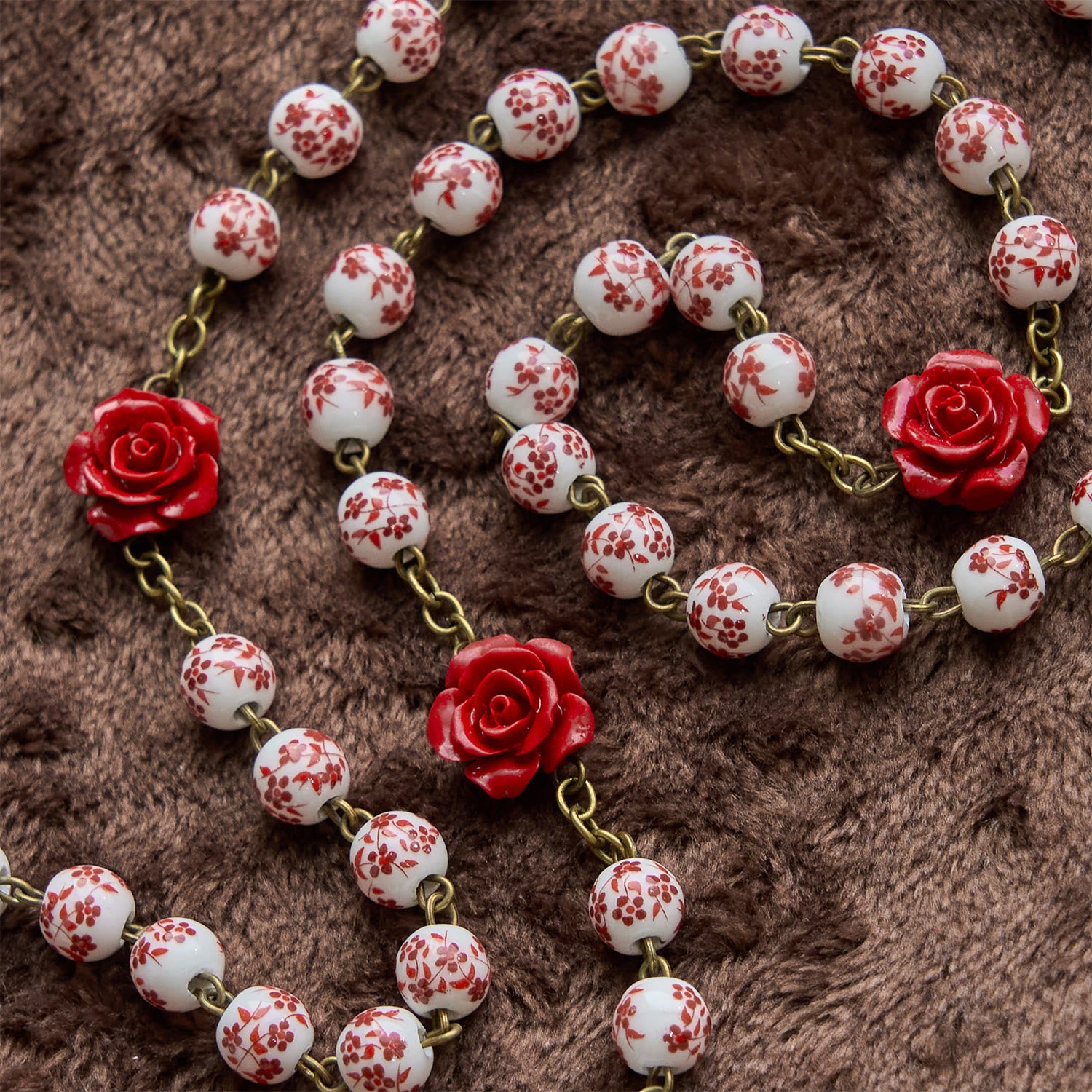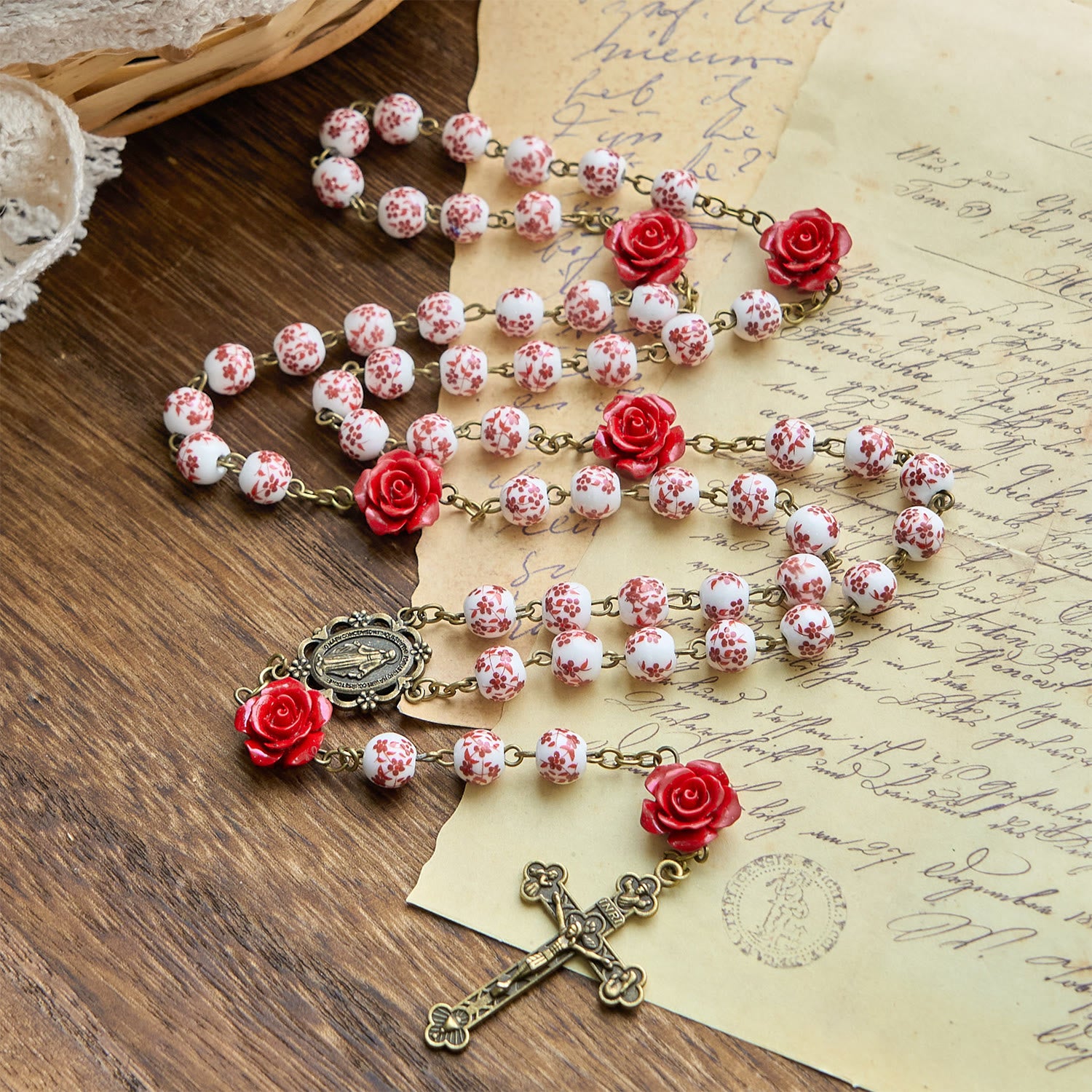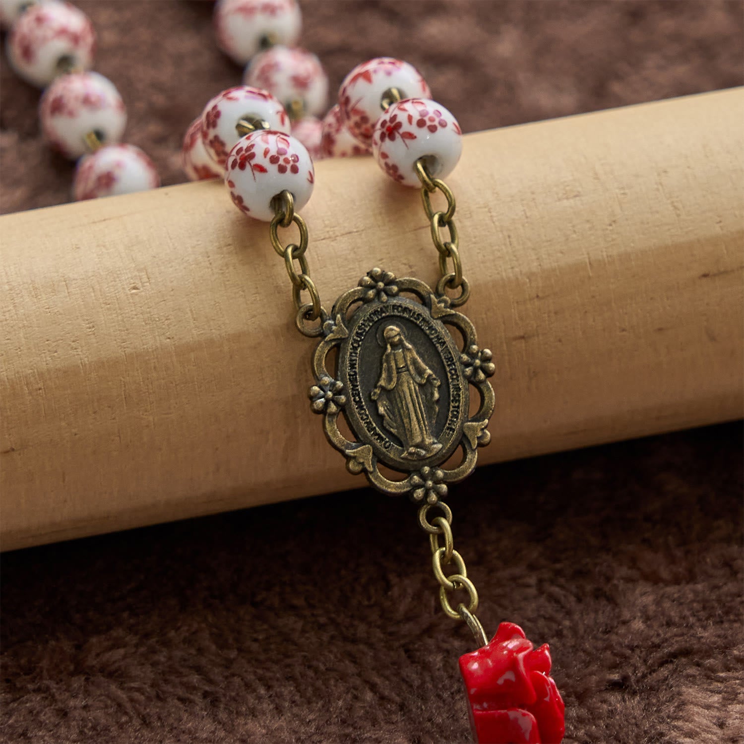 Dieser Rosenkranz besticht durch Keramikperlen, jede einzelne ein Kunstwerk. Ihre glatte Textur bietet ein wohltuendes Tastgefühl beim Beten. Die Keramik verleiht Ihrem Gebet mit ihrer angeborenen Eleganz einen Hauch zeitloser Schönheit. - Lebendige Akzente in Zinnoberrosa
