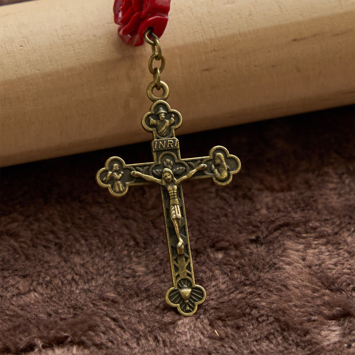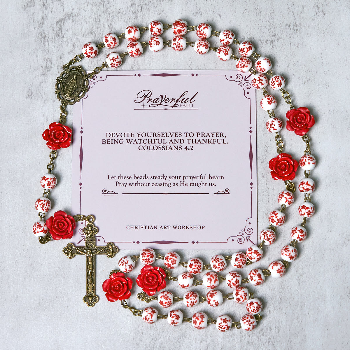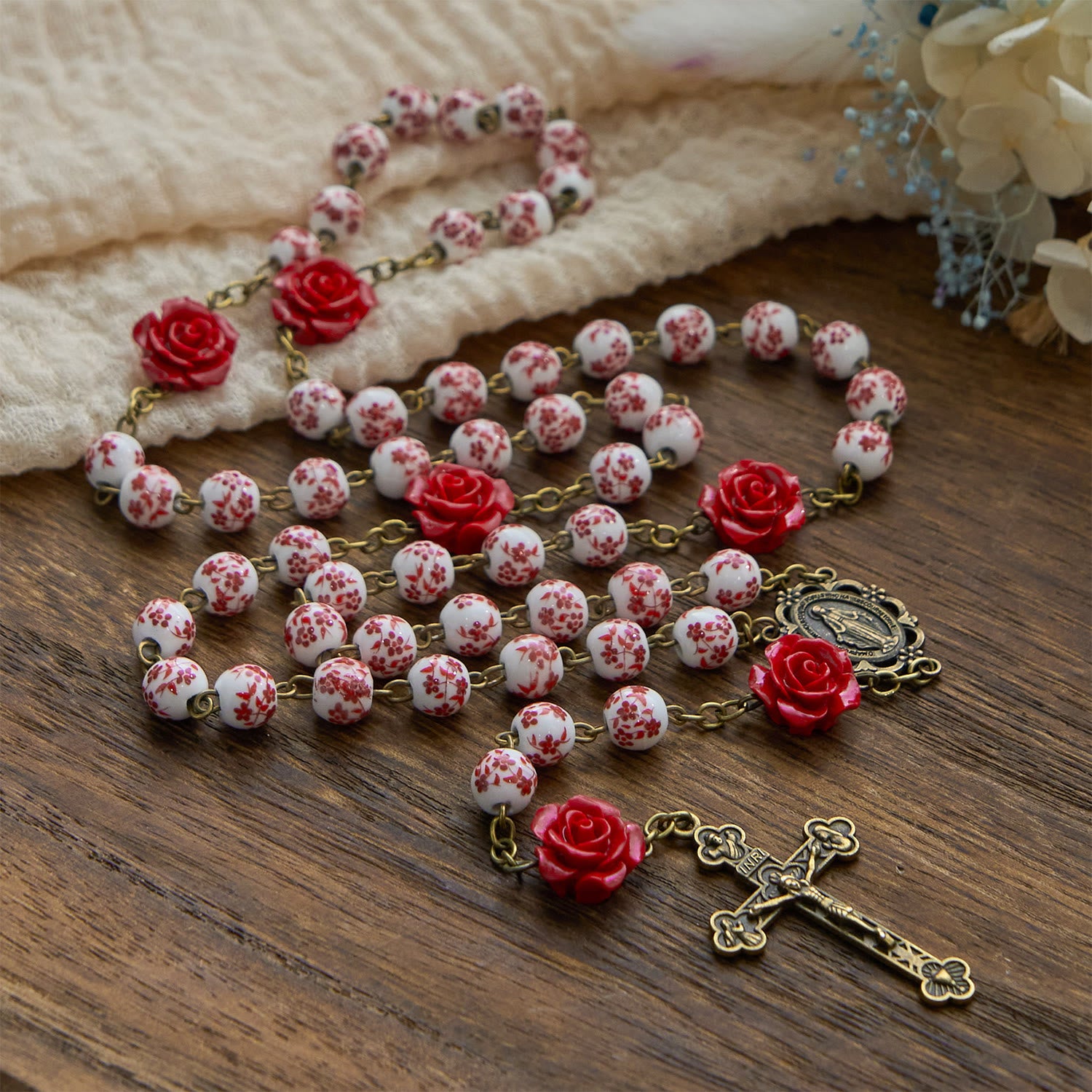 Dieser Rosenkranz besticht durch Keramikperlen, jede einzelne ein Kunstwerk. Ihre glatte Textur bietet ein wohltuendes Tastgefühl beim Beten. Die Keramik verleiht Ihrem Gebet mit ihrer angeborenen Eleganz einen Hauch zeitloser Schönheit. - Lebendige Akzente in Zinnoberrosa