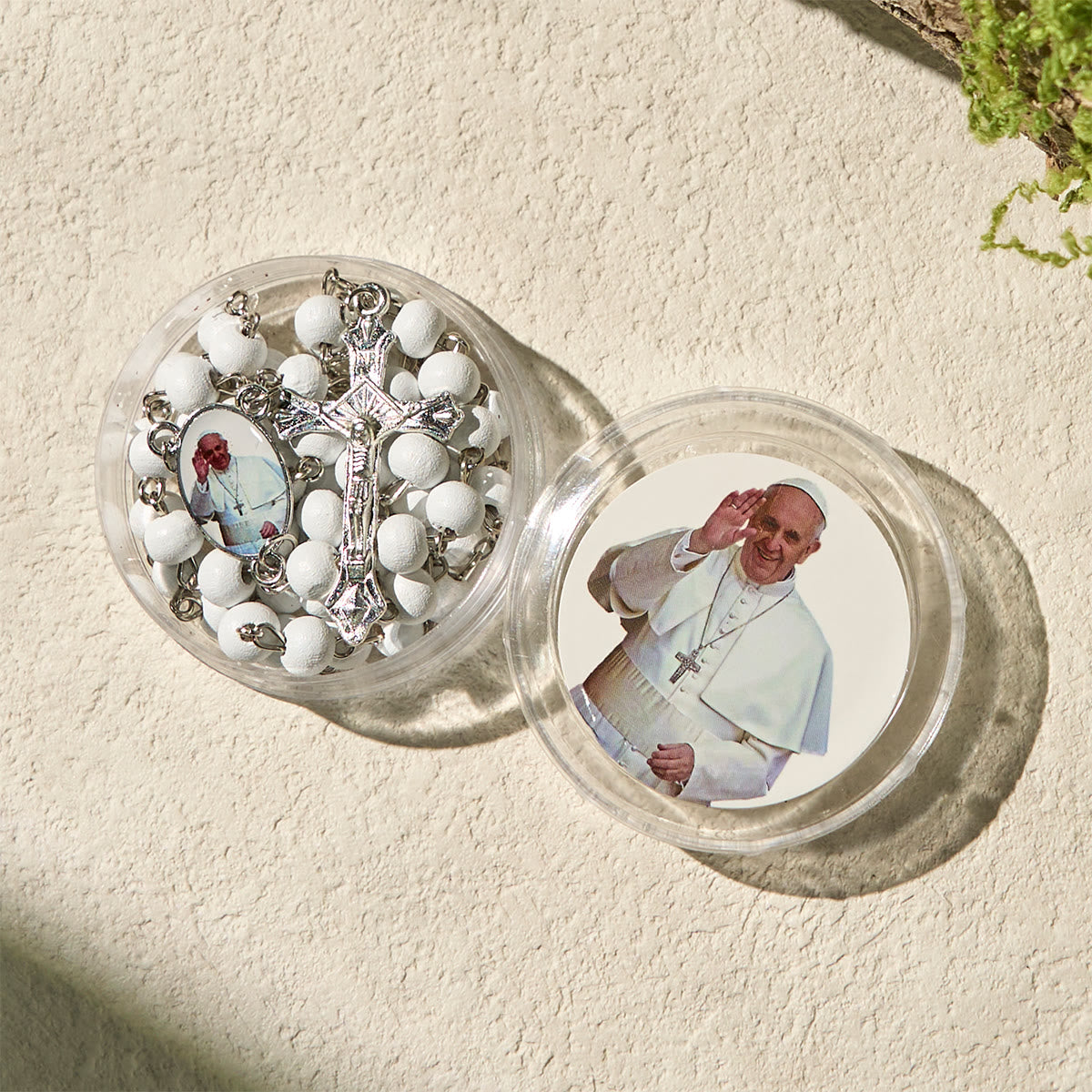 Jede Perle vermittelt ein Gefühl von Reinheit und Gelassenheit und hilft Ihnen, sich beim Beten zu konzentrieren und innere Ruhe zu finden. - Segen und Kruzifix von Papst Franziskus
