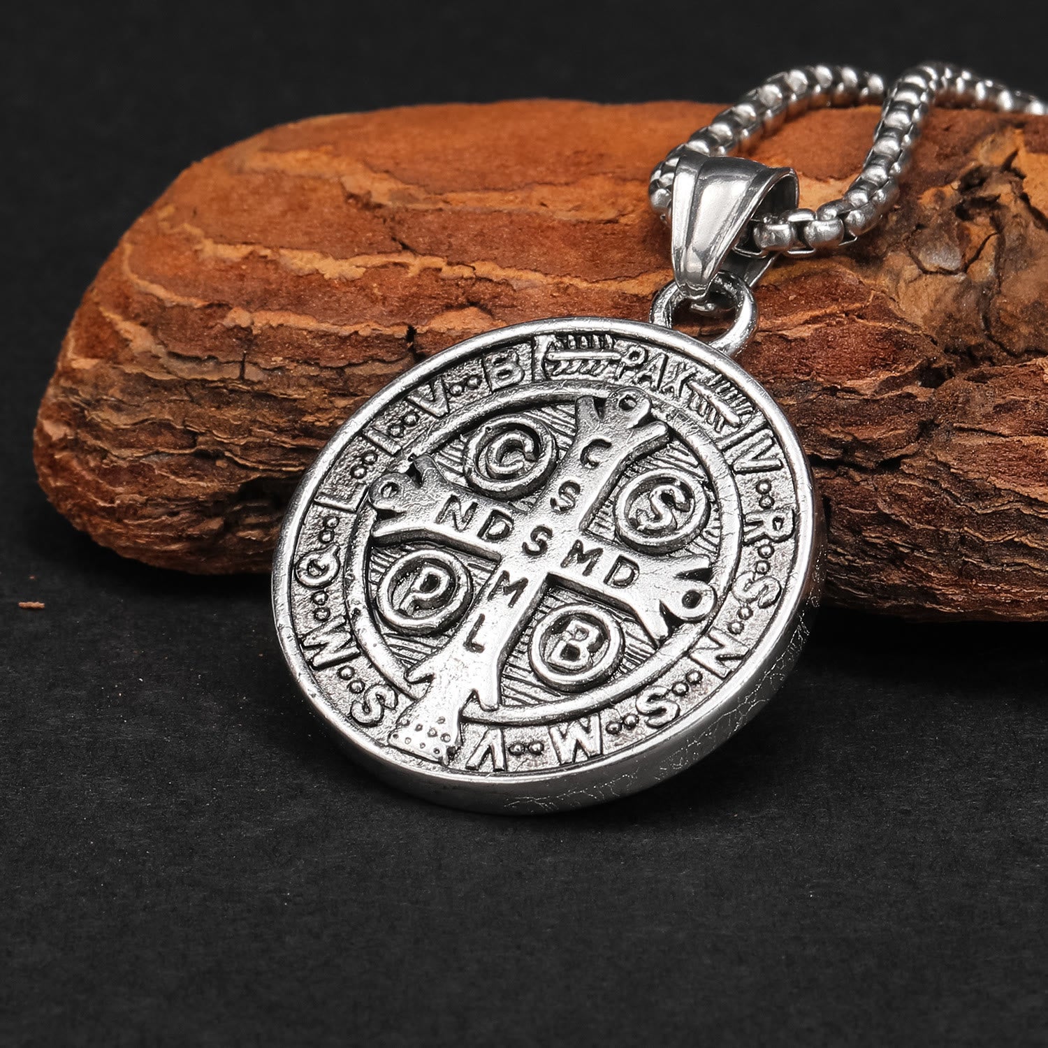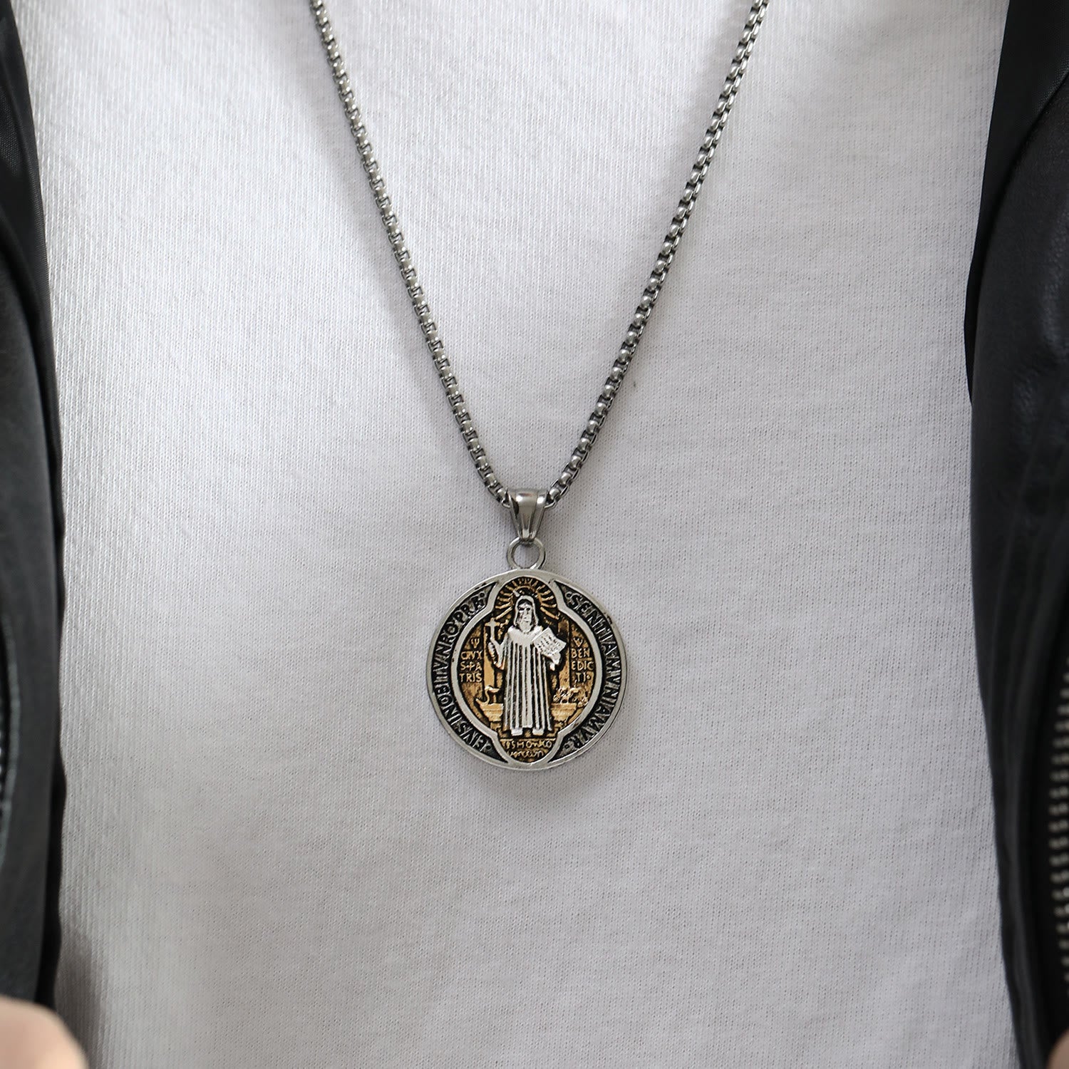 Halskette mit Anhänger des Heiligen Benedikt im klassischen Retro-Stil