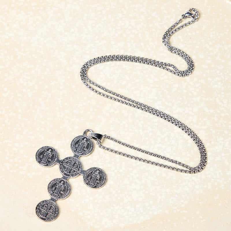 Klassische Halskette mit Anhänger im Retro-Stil mit St. Benedikt-Kreuz und göttlichem Schutz