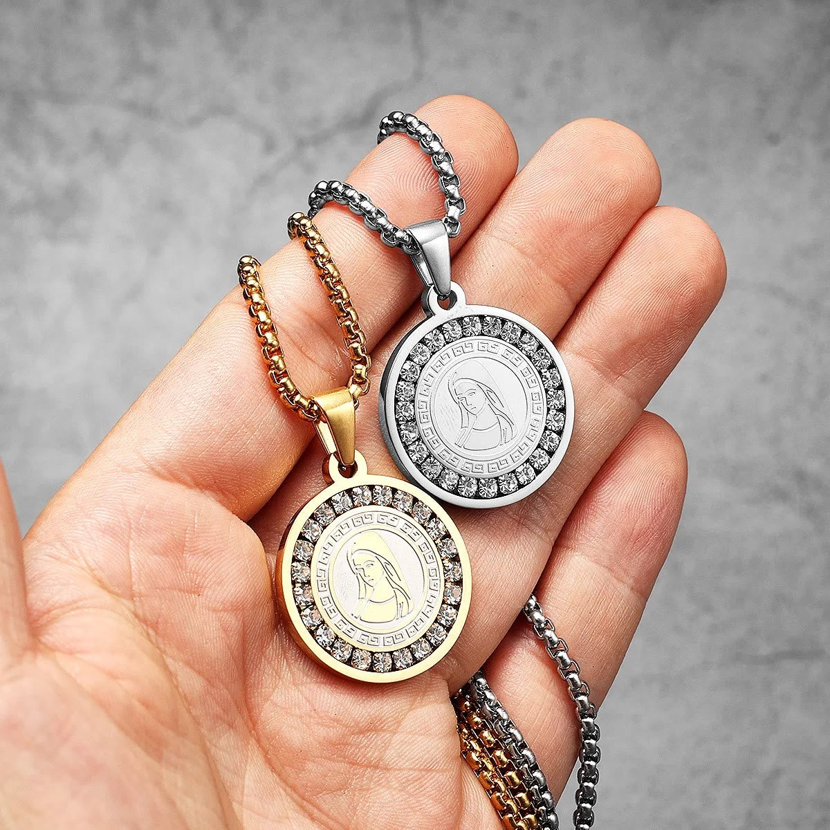 Christianartworkshop Halskette mit Anhänger Jungfrau Maria aus Titan mit Zirkonia-Set