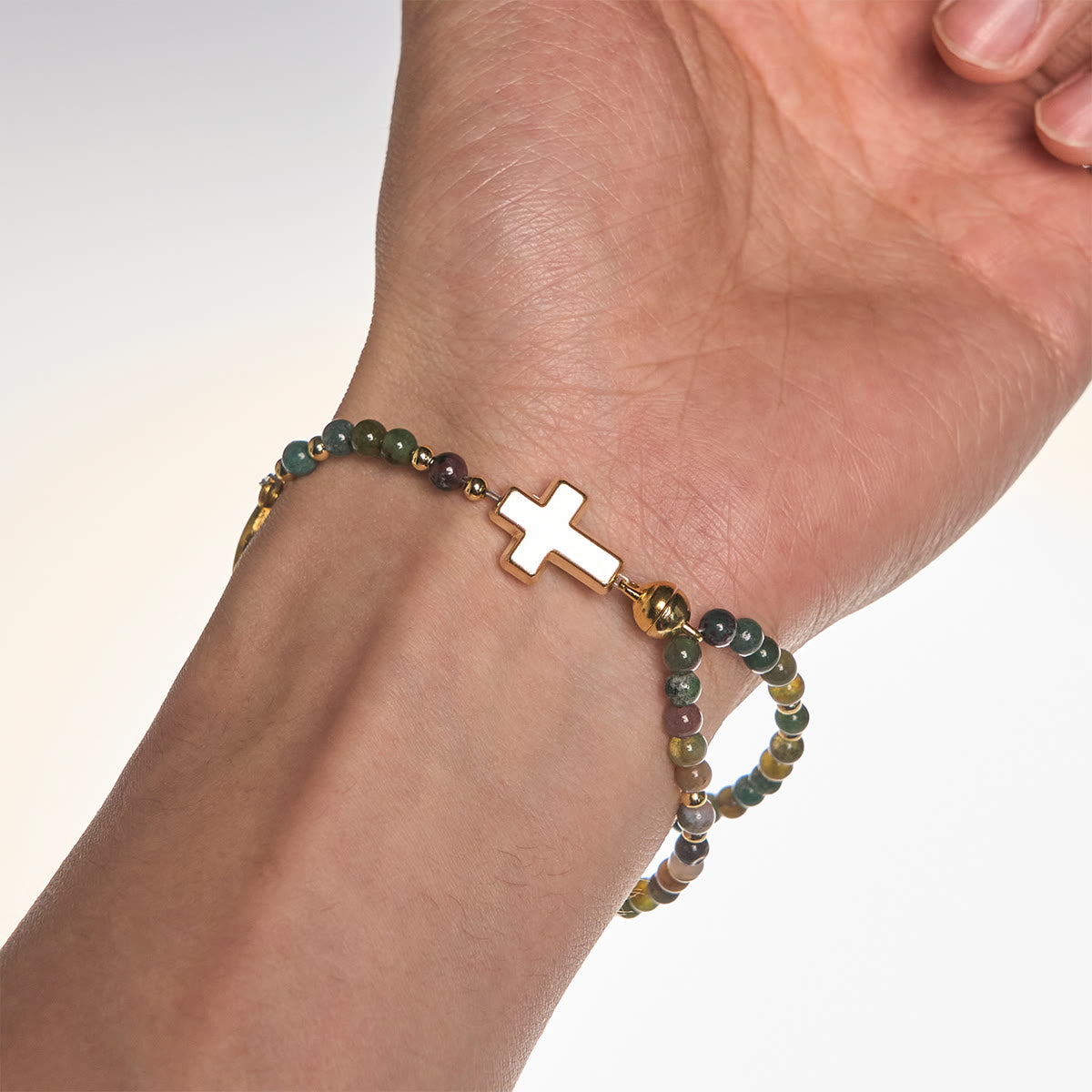 Dieses Stück fungiert sowohl als Armband als auch als vollwertiger Rosenkranz und lässt sich nahtlos vom Modeaccessoire zum Andachtsinstrument umfunktionieren. - Perfekt für den alltäglichen Glauben und besondere Anlässe