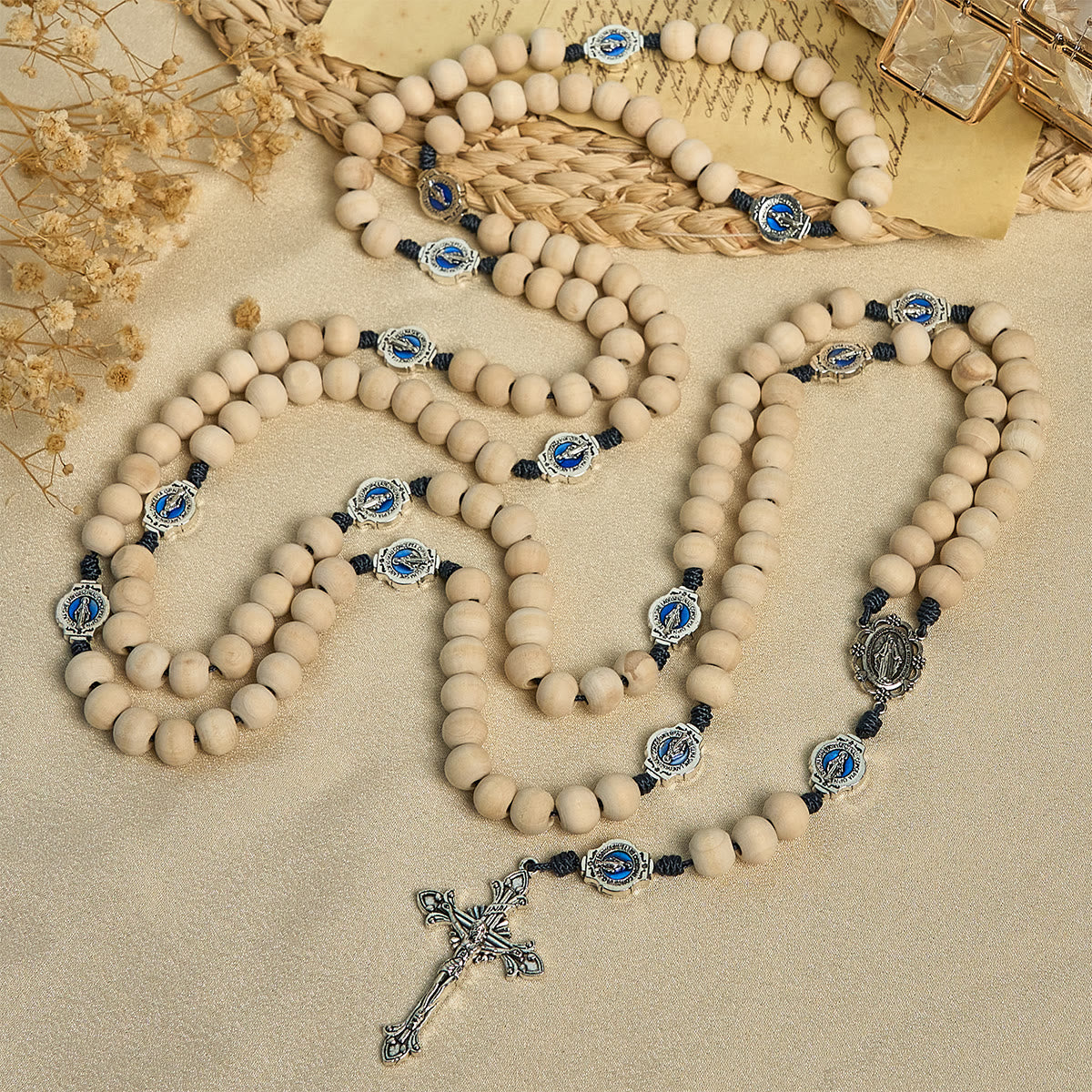 In der Mitte befindet sich die Wundertätige Medaille, ein Symbol göttlichen Schutzes und wundersamer Gnade, während das detailreiche Kruzifix den Rosenkranz im Mysterium des Opfers und der ewigen Erlösung Christi verankert. - Ein spiritueller Begleiter für ausgedehnte Gebete