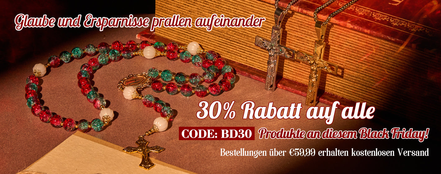 Christianartworkshop Heiliger Gral und Kreuz aus 8 mm runder mehrfarbiger Glaslegierungskette mit Rosenkranz