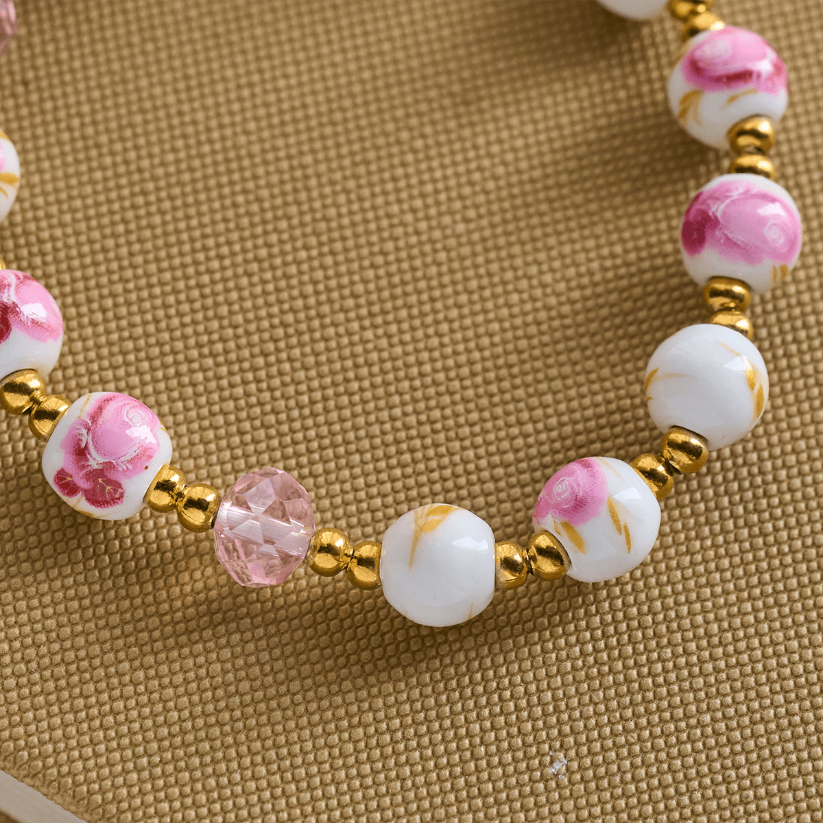 Elegantes 8 mm großes rosa Keramikarmband mit Blumenmuster und Wundertätiger Medaille