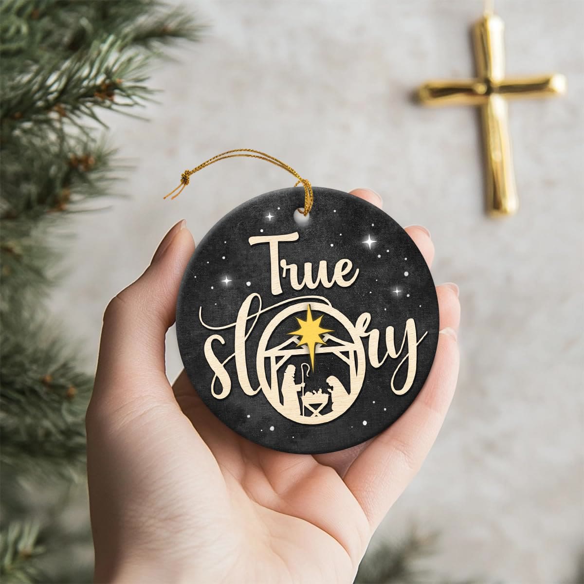 True Story Weihnachtsdekoration zum Aufhängen, schwarz und golden