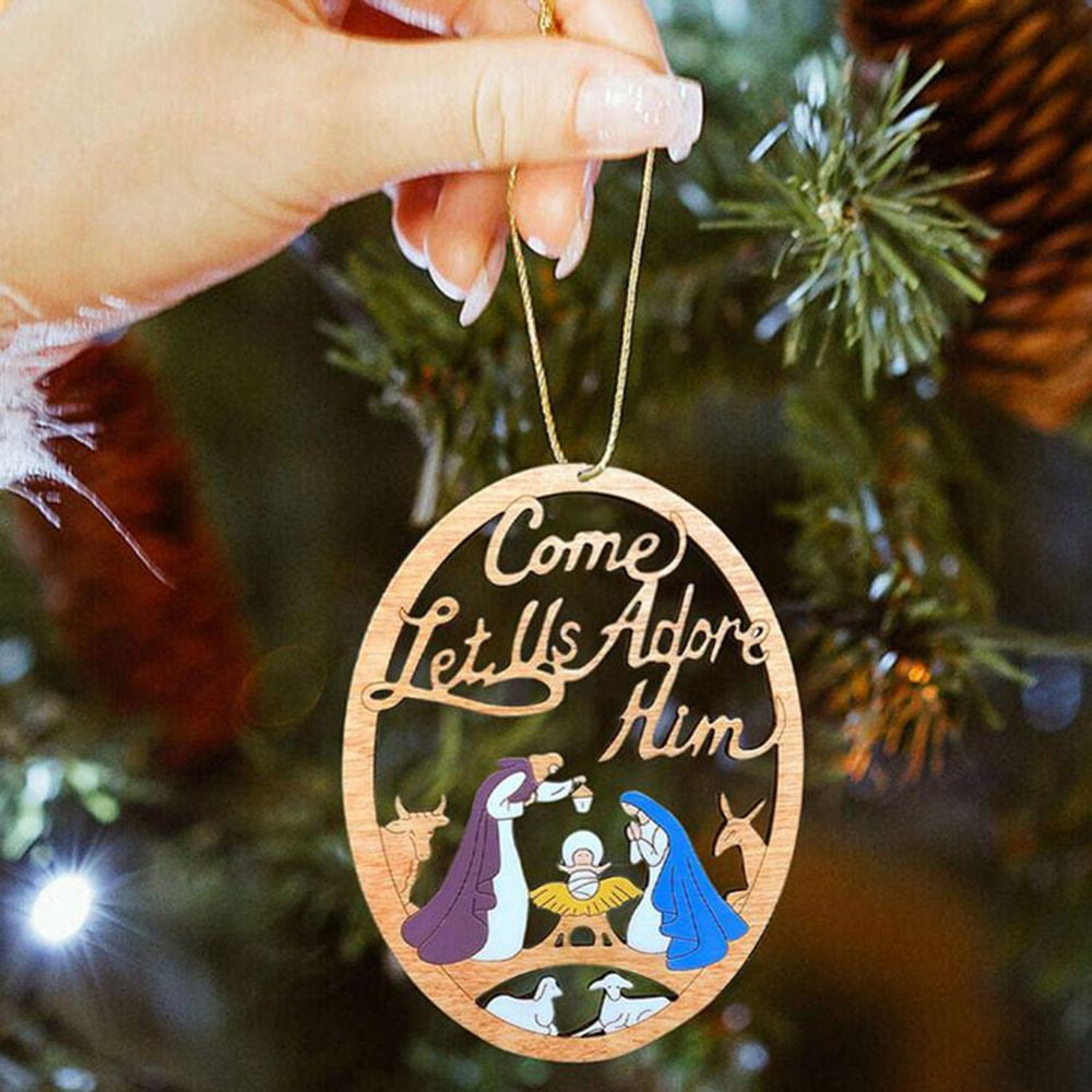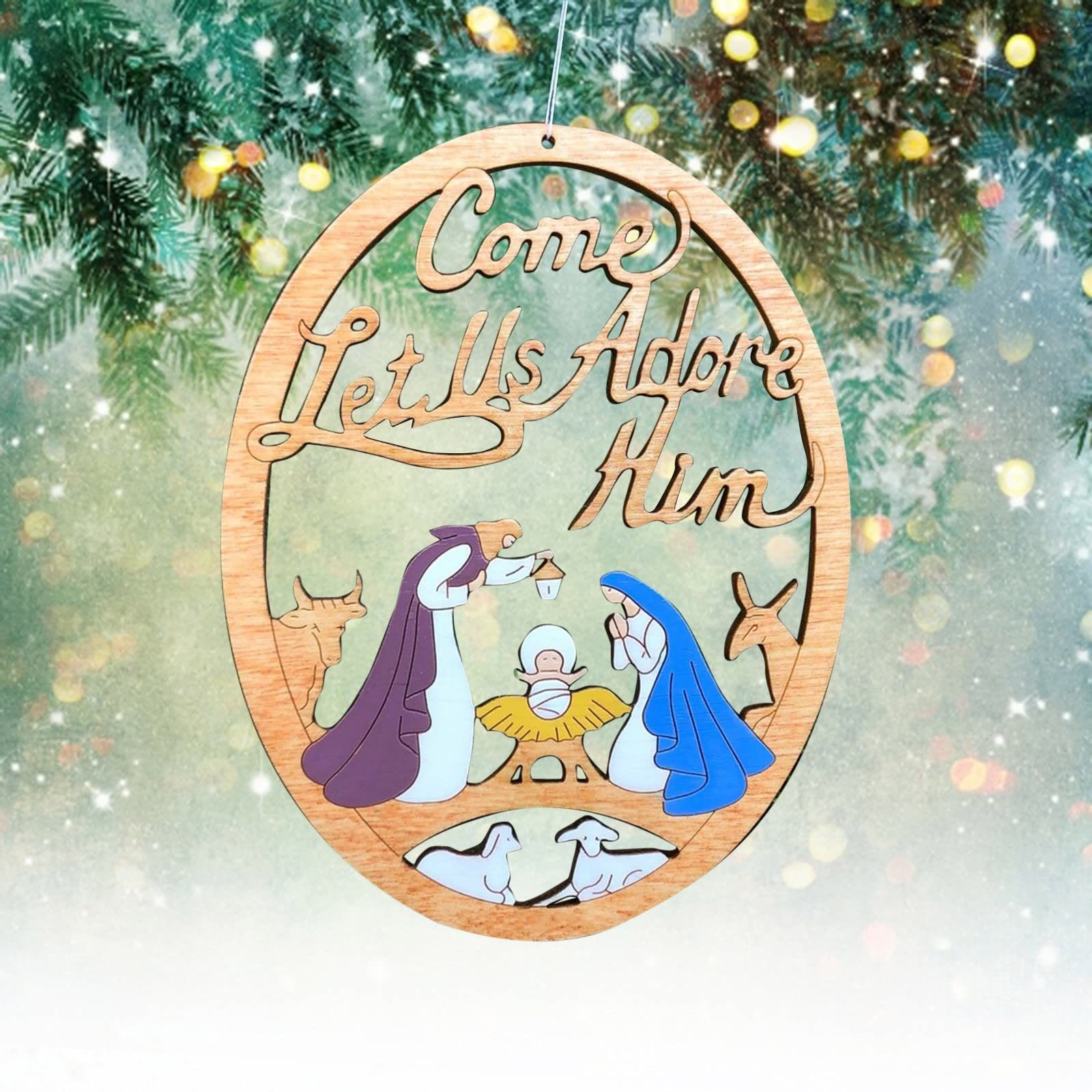 Christianartworkshop Weihnachtskrippe im rustikalen, farbigen Stil, „Komm, lass uns ihn anbeten“, Weihnachtskrippe, hängende Ornamente - Weihnachtskrippe - image 0