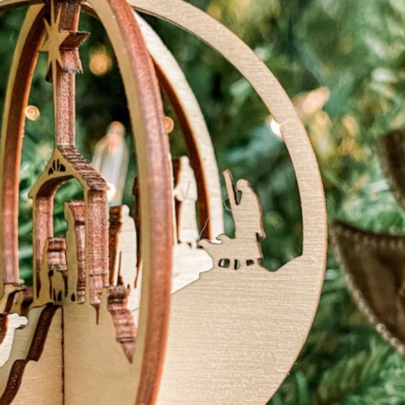 Unsere Weihnachtsdekorationen zeigen detailreiche Darstellungen der Weihnachtskrippe, die den heiligen Moment der Geburt Jesu einfangen. Jedes Ornament kombiniert natürliche Holztöne mit einer zarten Glitzerschicht und symbolisiert so das Licht und die Liebe der Weihnachtszeit. Die zeitlosen Silhouetten von Maria, Josef und dem Jesuskind werden von Sternen und Engelsfiguren umrahmt und erinnern an das göttliche Wunder im Herzen von Weihnachten. - Eine sinnvolle Ergänzung für Ihren Weihnachtsbaum