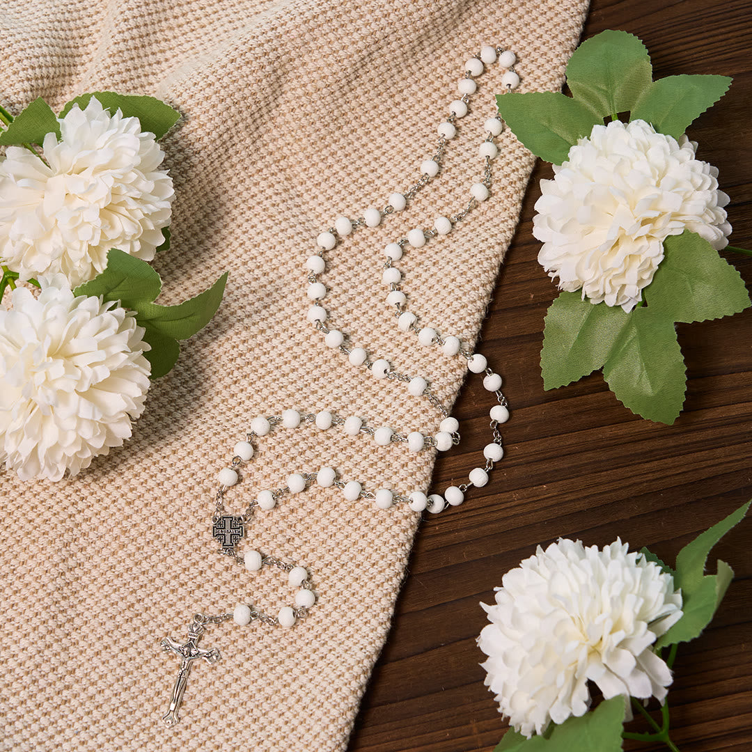 Jerusalem-Medaille und Kruzifix aus 7 mm runder weißer Rosenholzlegierungskette