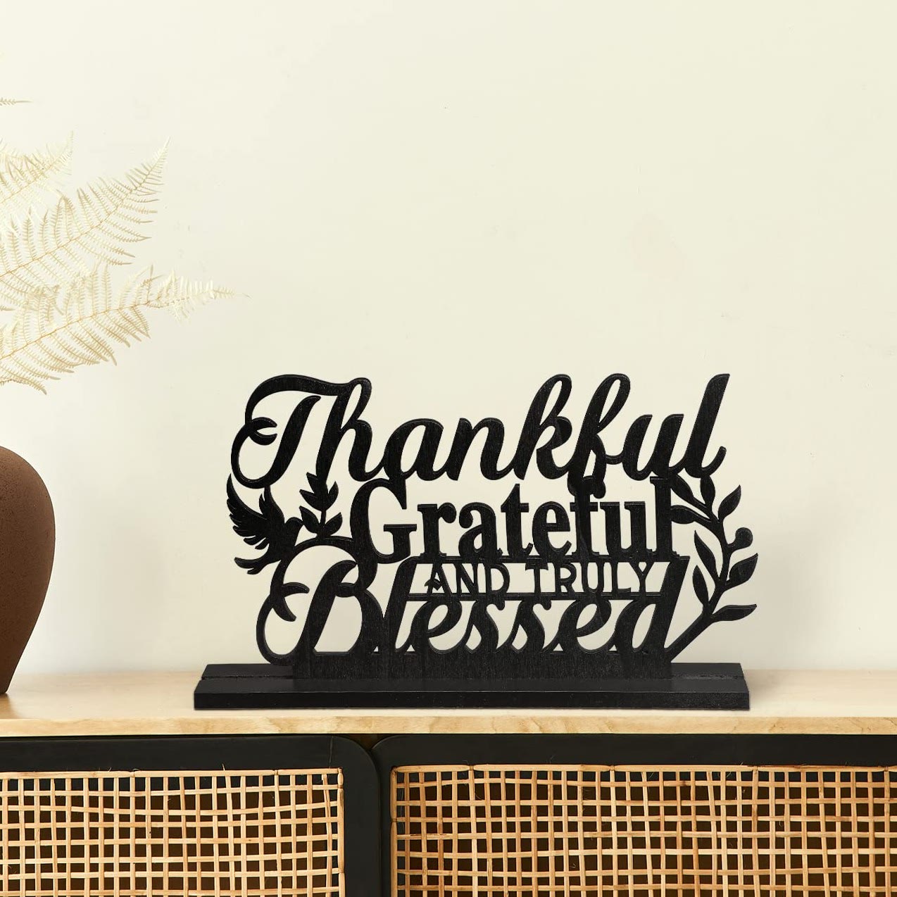 Das sorgfältig aus Holz gefertigte Kunstwerk besticht durch kunstvolle Schriftzüge, ein Kreuz und Taubenmotive und schafft so eine andächtige Atmosphäre für Ihren Tisch.