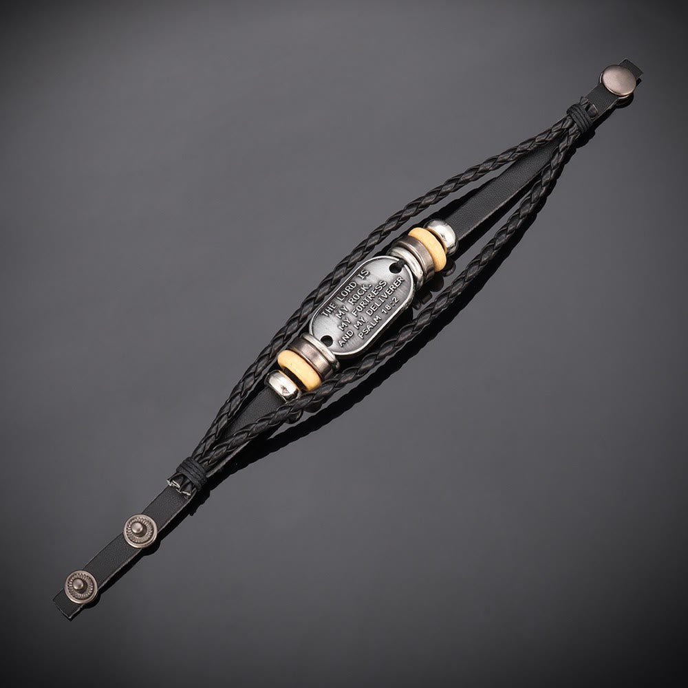 Christianartworkshop Handgefertigtes geflochtenes Lederarmband mit Psalm 18:2-Inschrift
