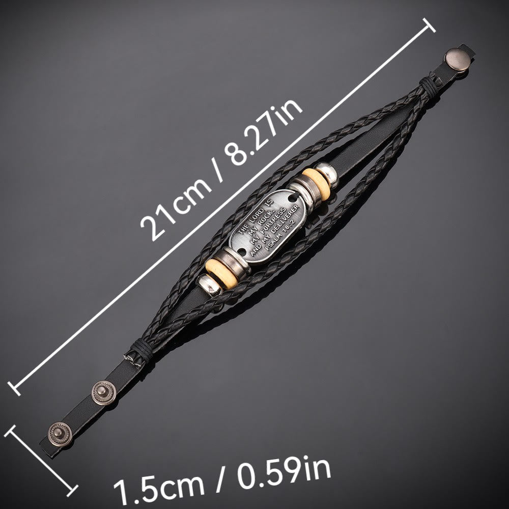 Christianartworkshop Handgefertigtes geflochtenes Lederarmband mit Psalm 18:2-Inschrift - Handgelenkumfang: 8,27''/21cm - image 0