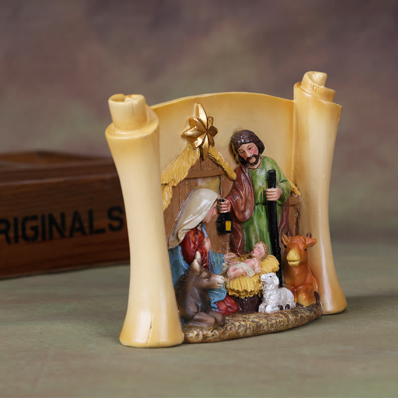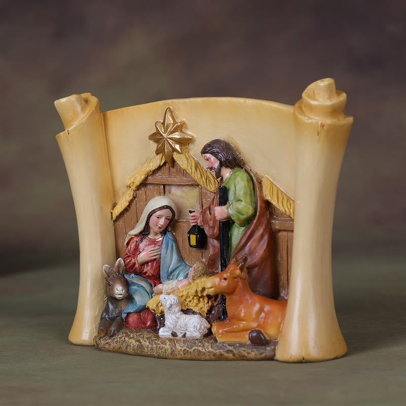 Christianartworkshop Klassischer Stil, buntes Schriftrollen-Design, Weihnachtskrippe der Heiligen Familie, Desktop-Dekoration, Ornament - Weihnachtskrippe - image 0