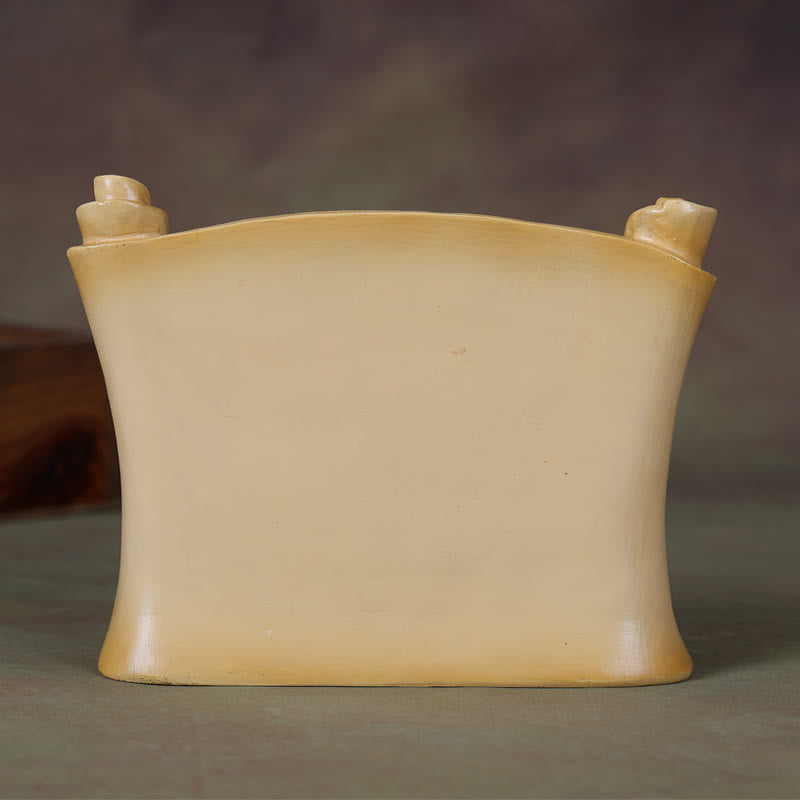 • Feiern Sie Glauben und Kunstfertigkeit: Weihnachtskrippe mit Schriftrollen-Design, Tischdekoration, Ornament der Heiligen Familie