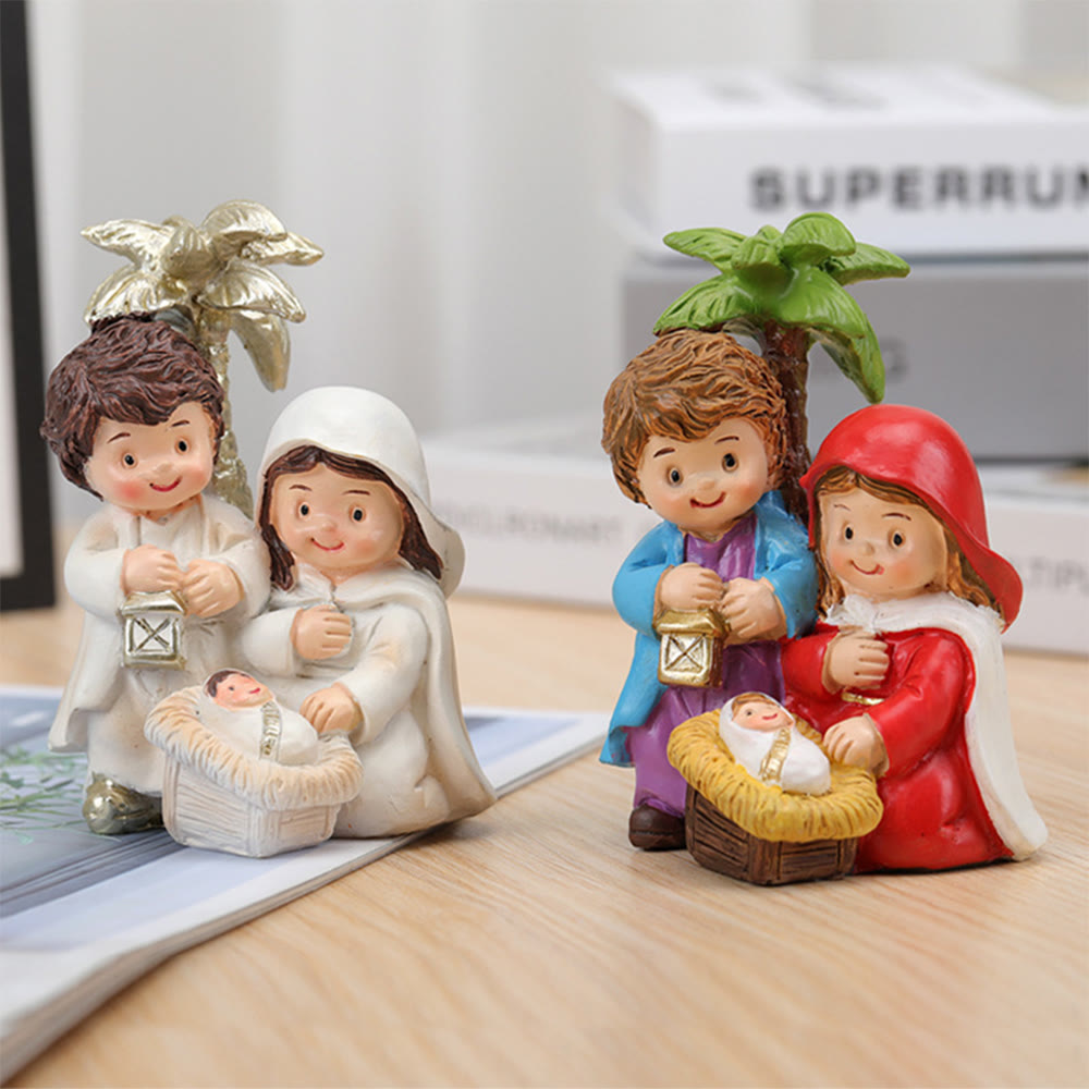 Cartoon-Stil Skulptur der Krippe Szene Harz Stereoscopic Desktop Ornamente
