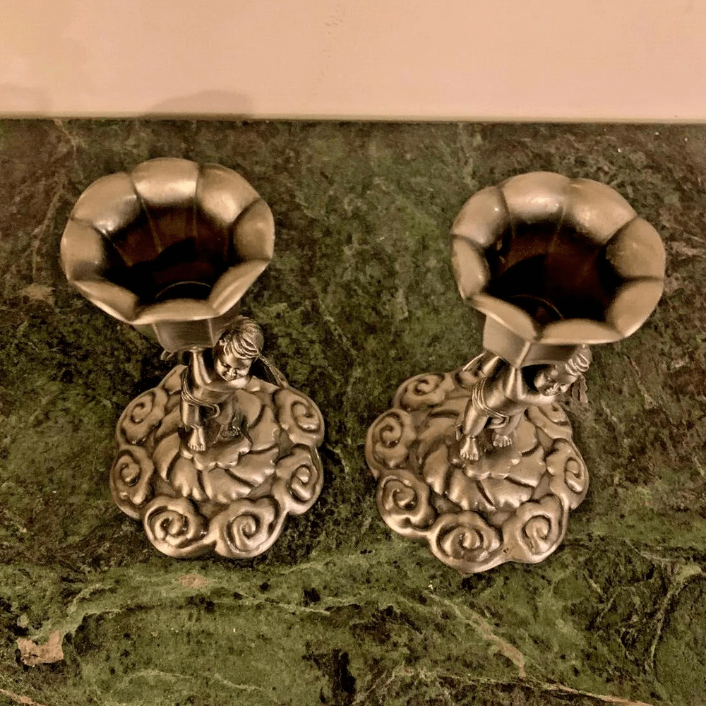- Eleganter Engelskerzenhalter aus Zinn: Eine himmlische Note für Ihr Zuhause