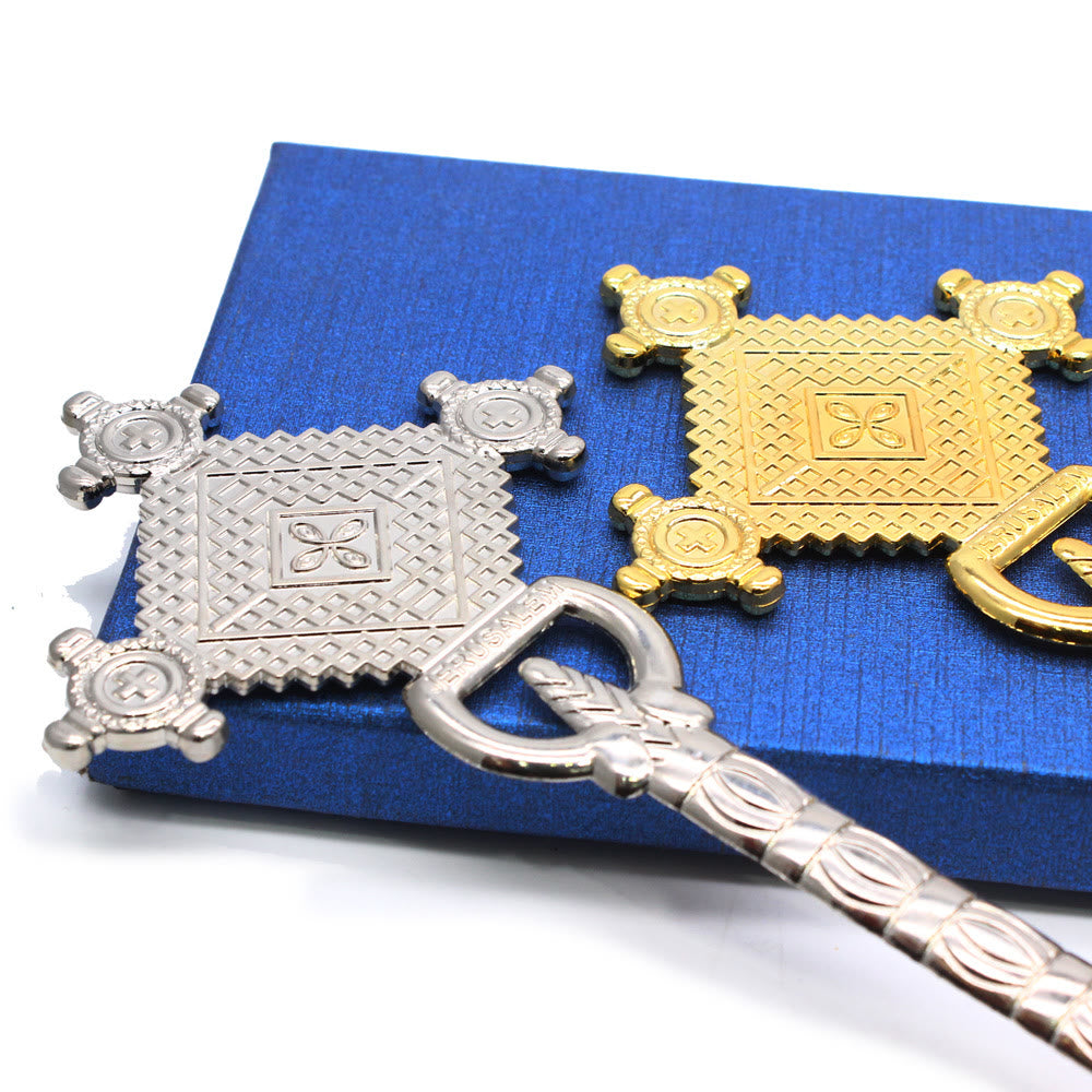 Doppelte Pracht: Wählen Sie zwischen der prächtigen Gold- und der strahlenden Silberversion dieses Handkreuzes. Jede Farboption verkörpert die Essenz von Majestät und göttlicher Schönheit und ermöglicht es Ihnen, diejenige auszuwählen, die Ihre spirituelle Praxis oder Ihren heiligen Ort am besten unterstreicht.