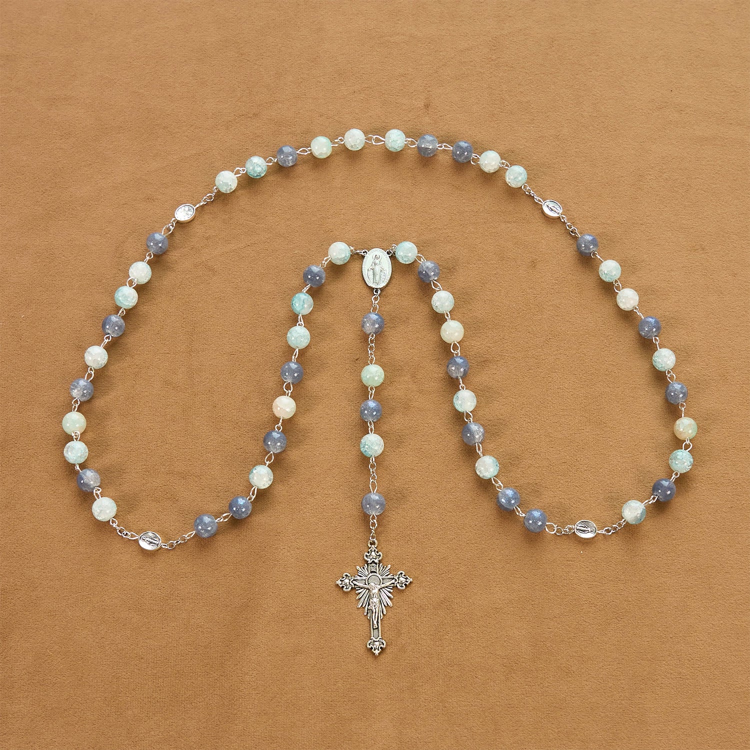 Christianartworkshop Handgefertigter Original-Rosenkranz in Graublau mit Wundertätiger Medaille: Ein einzigartiger Ausdruck des Glaubens - Graublauer Stein - image 0