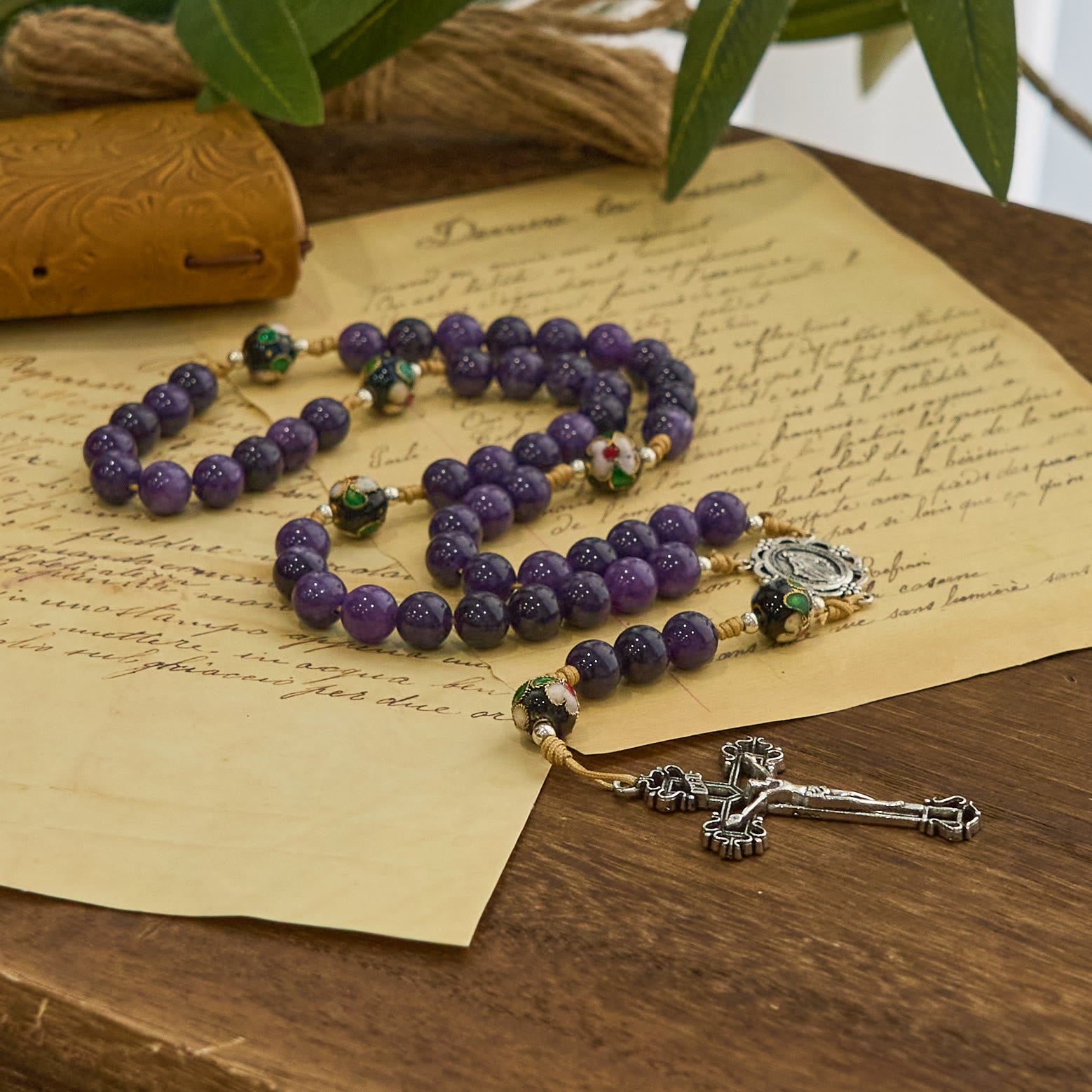 Christianartworkshop Rosenkranz aus violettem Achat und Cloisonné-Perlen mit Medaille und Kruzifix der Jungfrau Maria: Fühlen Sie anmutige Hingabe