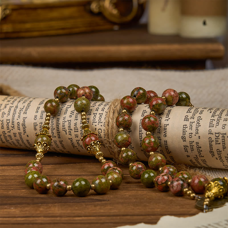 - Erfreuen Sie sich an der Eleganz und spirituellen Anmut unseres handgefertigten Rosenkranzes. Jede Perle ist sorgfältig poliert und vereint sanfte erdige Grüntöne mit warmen Rosatönen, um Ihr Gebetserlebnis zu vertiefen. Der Rosenkranz besticht durch aufwendige Goldakzente und ein wunderschön verziertes Kruzifix, das unerschütterlichen Glauben und ewige Hoffnung symbolisiert.