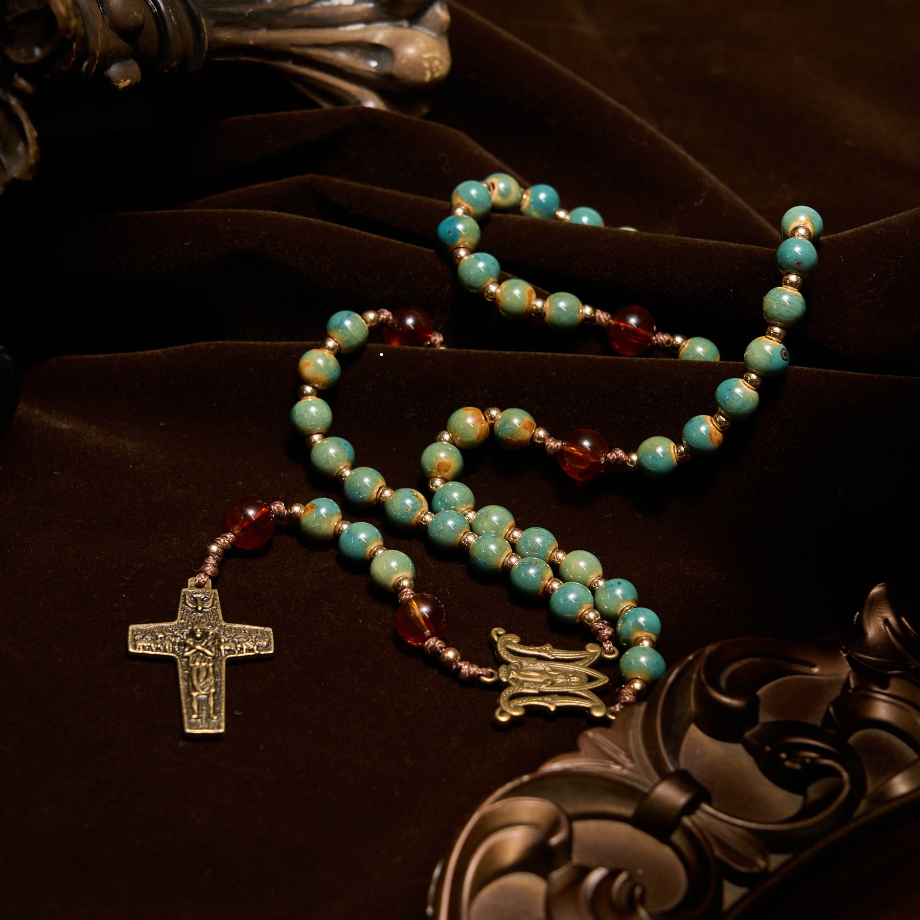 Dieser Rosenkranz verbindet die natürliche Ruhe türkisfarbener Perlen mit goldenen Legierungsgliedern. Die detailreiche Wundertätige Medaille und das Kruzifix spiegeln göttliche Gnade wider – jede Perle eine Brücke zur heiligen Verbindung. - Ritual und tägliche Ehrfurcht