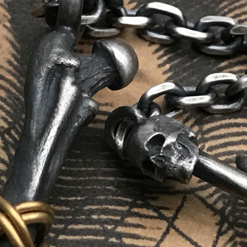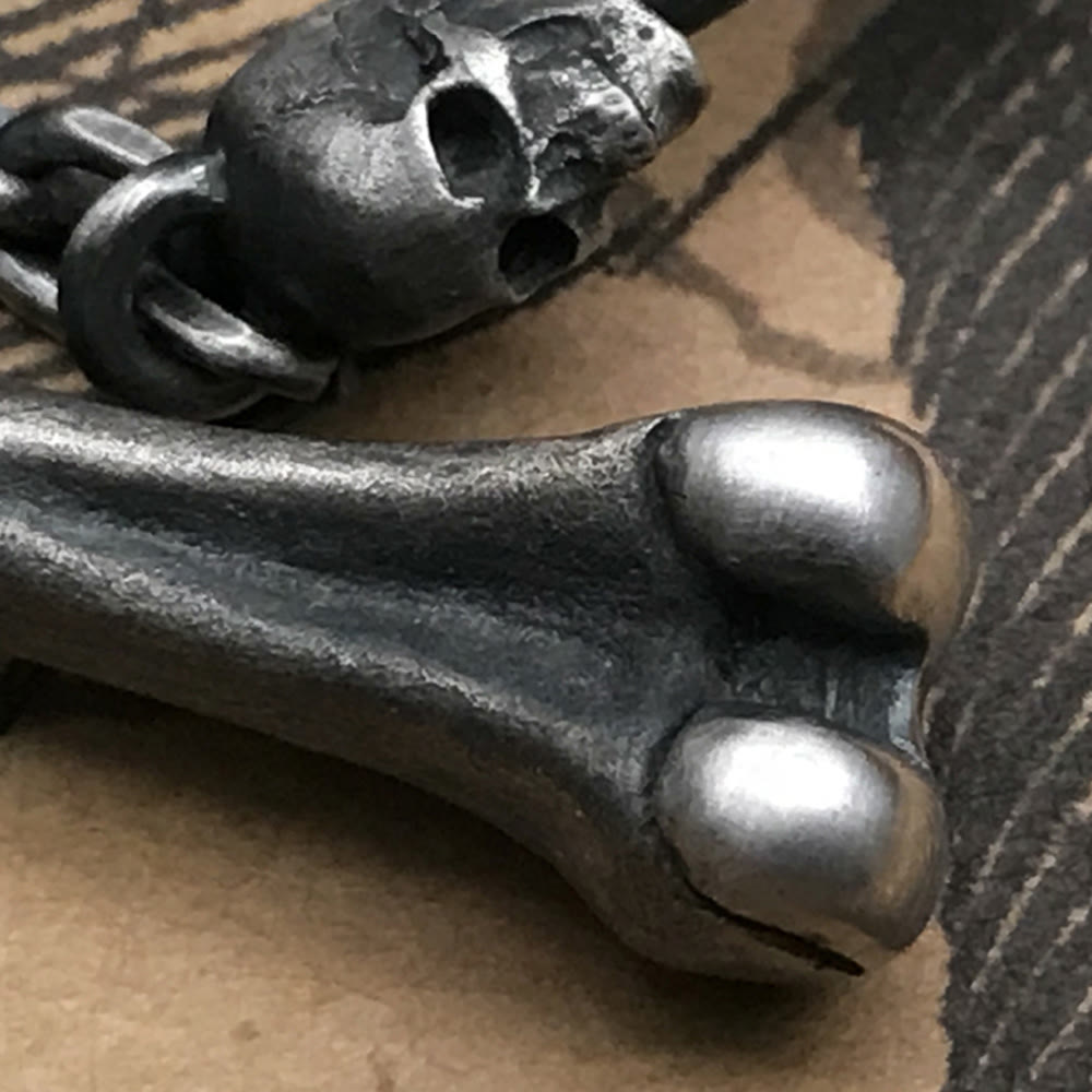 Jedes knochenförmige Segment ist sorgfältig gefertigt, mit sanften Rundungen und subtilen Details, die die Handwerkskunst unterstreichen. Das Silber ist anlaufbeständig und behält seinen kühlen, metallischen Glanz über die Zeit, während der goldfarbene Ring einen Hauch von Luxus verleiht, der nicht so schnell verblasst.