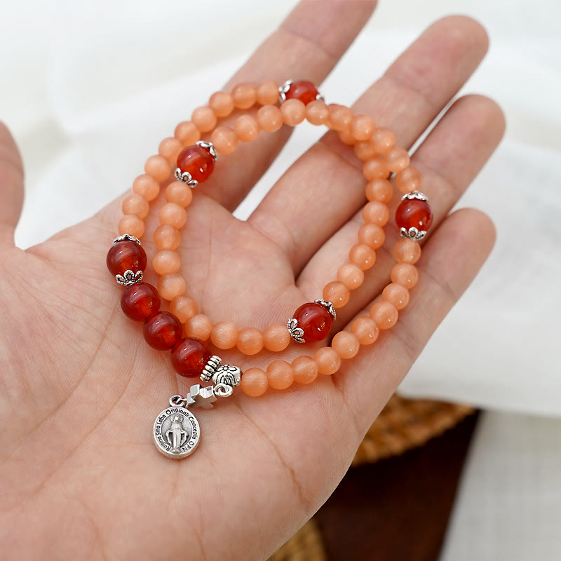 Die Wundertätige Medaille, ein Symbol göttlicher Gnade und der Fürsprache der Jungfrau Maria, wird durch die leuchtenden Steine ergänzt, die die Schönheit und Vielfalt der Schöpfung symbolisieren. Zusammen ergeben sie ein Schmuckstück, das sowohl an Stil als auch an spiritueller Bedeutung reich ist. - Natürliche Schönheit und Handwerk