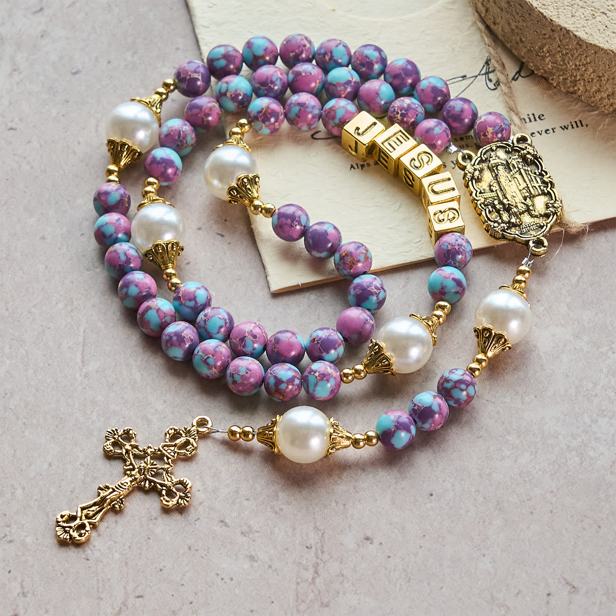 Christianartworkshop Royal Faith Lila Imperial Stone Individueller Rosenkranz mit personalisiertem JESUS-Buchstaben - JESUS (Keine Sonderanfertigung) - image 0