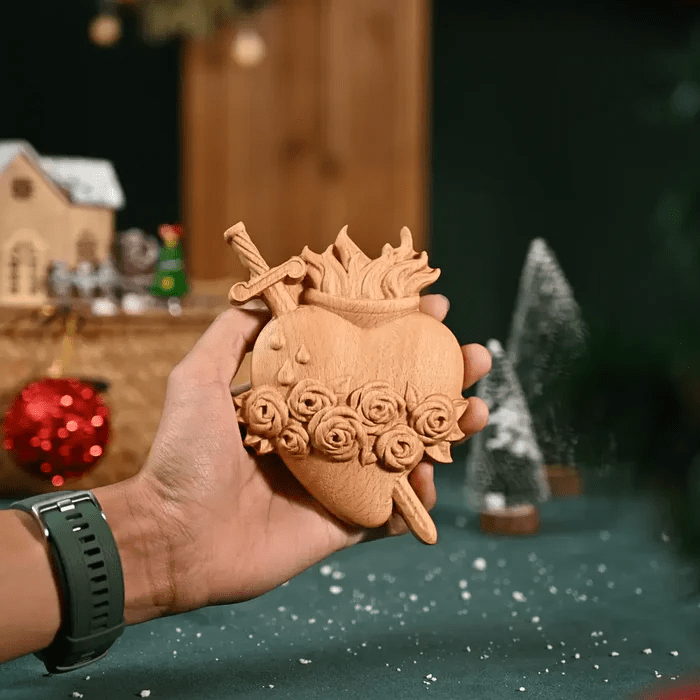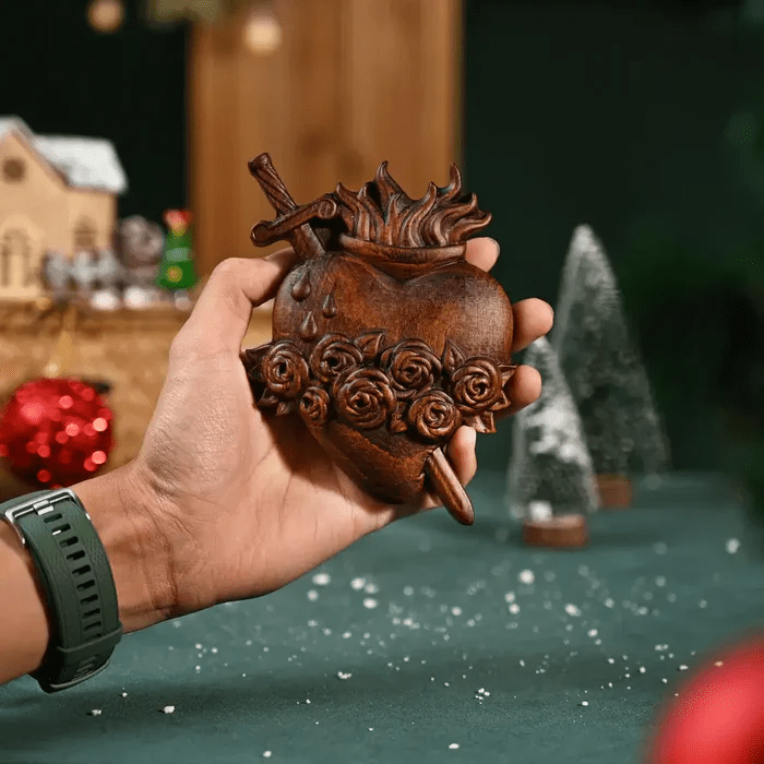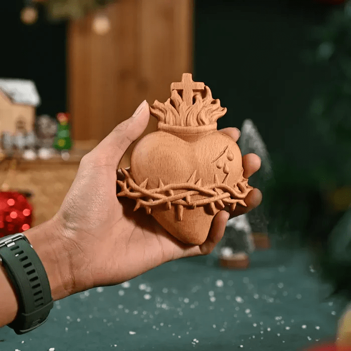Einzigartige geschnitzte christliche Herz-Jesu-Desktop-Ornamente