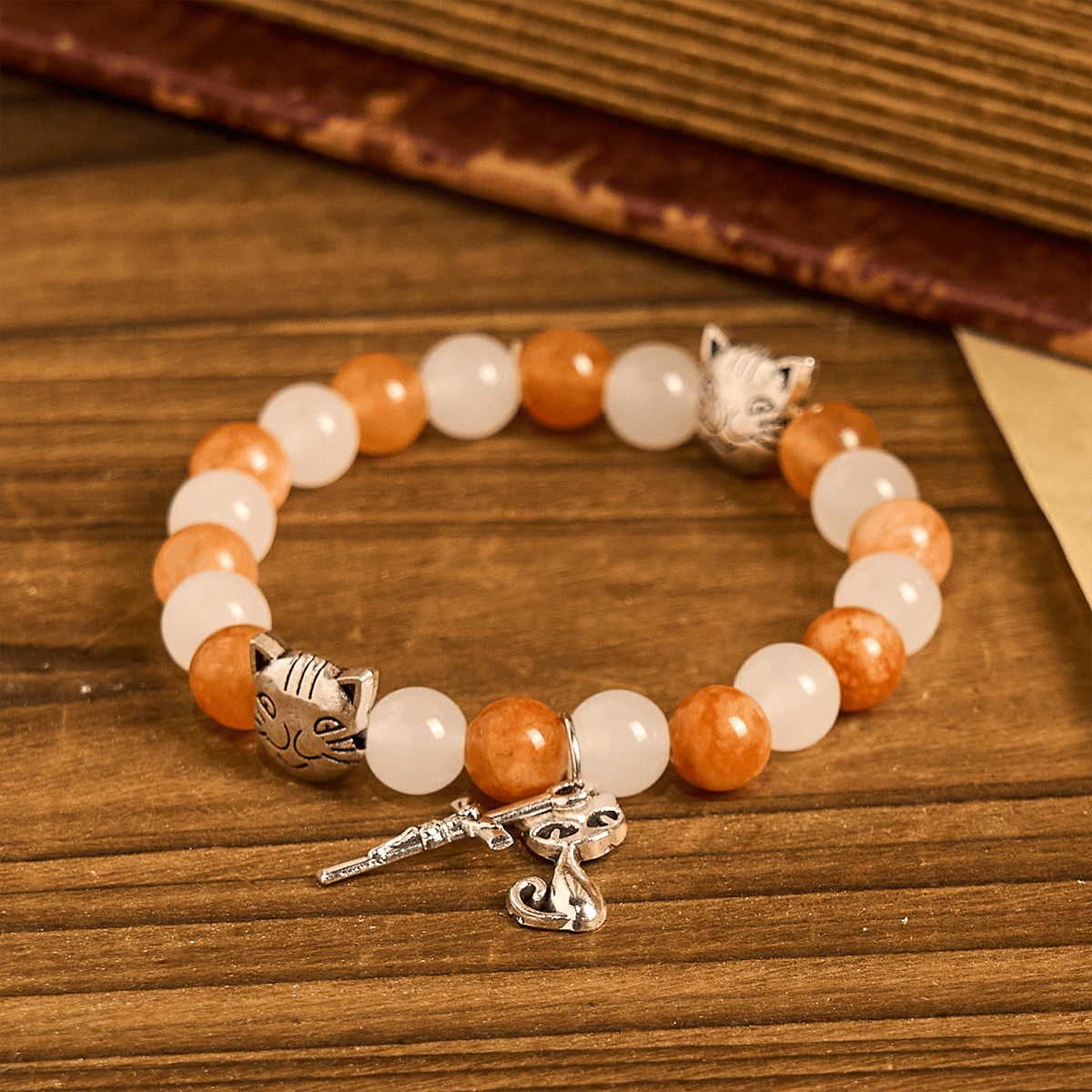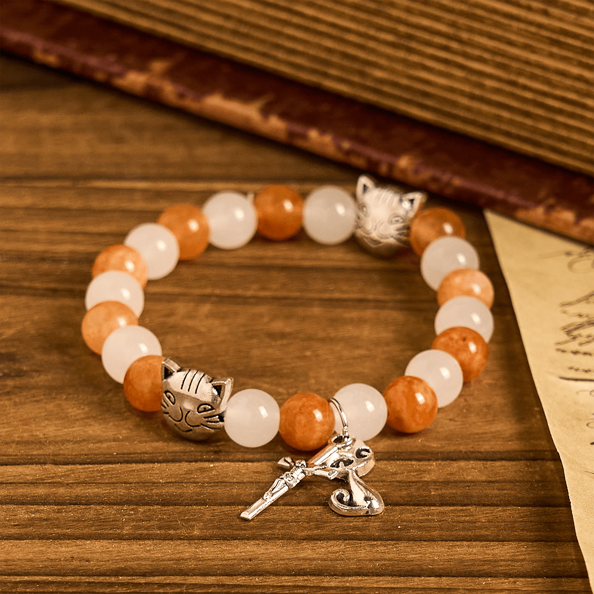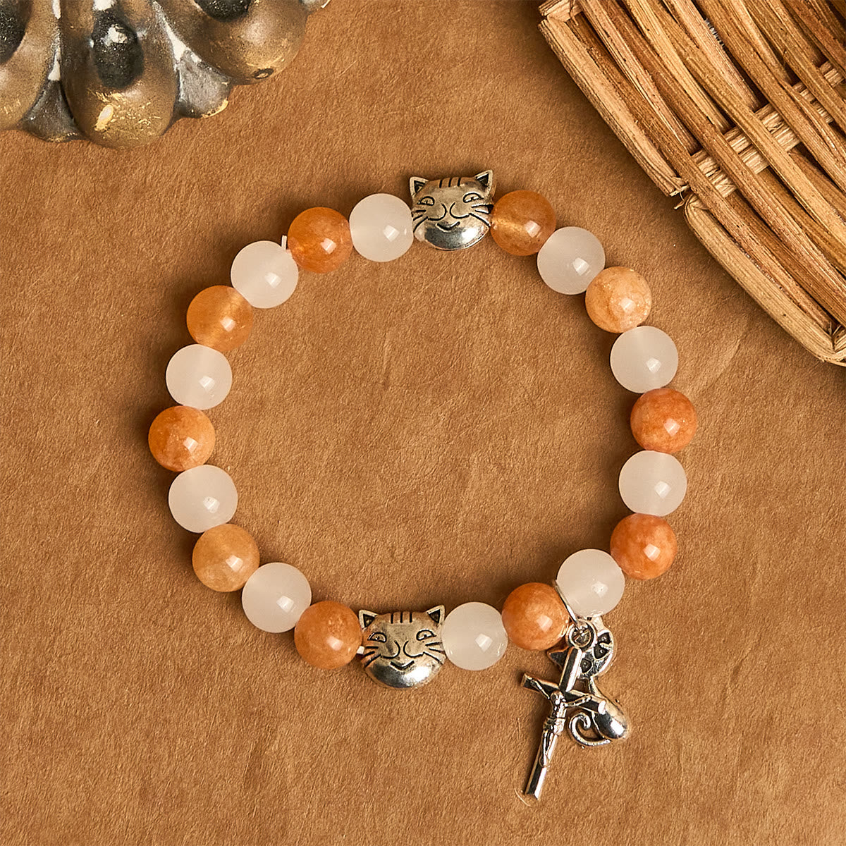 Inspiriert vom sanften Geist der orangefarbenen getigerten Katze kombiniert der Rosenkranz strahlende Quarzperlen mit verspielten Katzenmotiven und schafft so ein Gebetswerkzeug, das sowohl eine klassische Struktur als auch einen innovativen Ausdruck aufweist. - Gebet mit Liebe, Erinnerung mit Herz