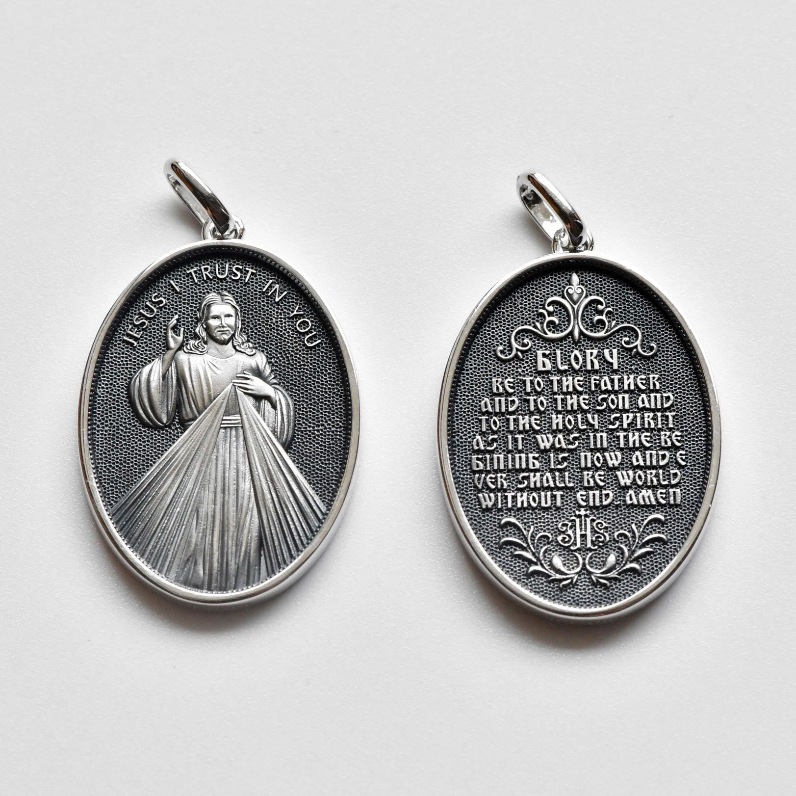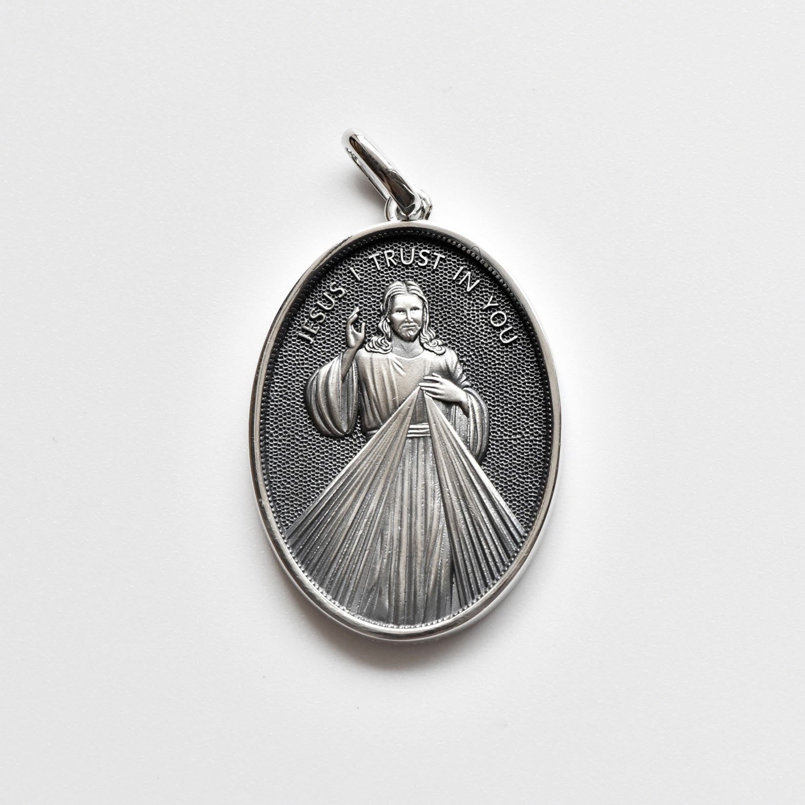 Halskette mit ovaler Medaille aus Sterlingsilber im Antik-Stil, Barmherzigkeit Jesu