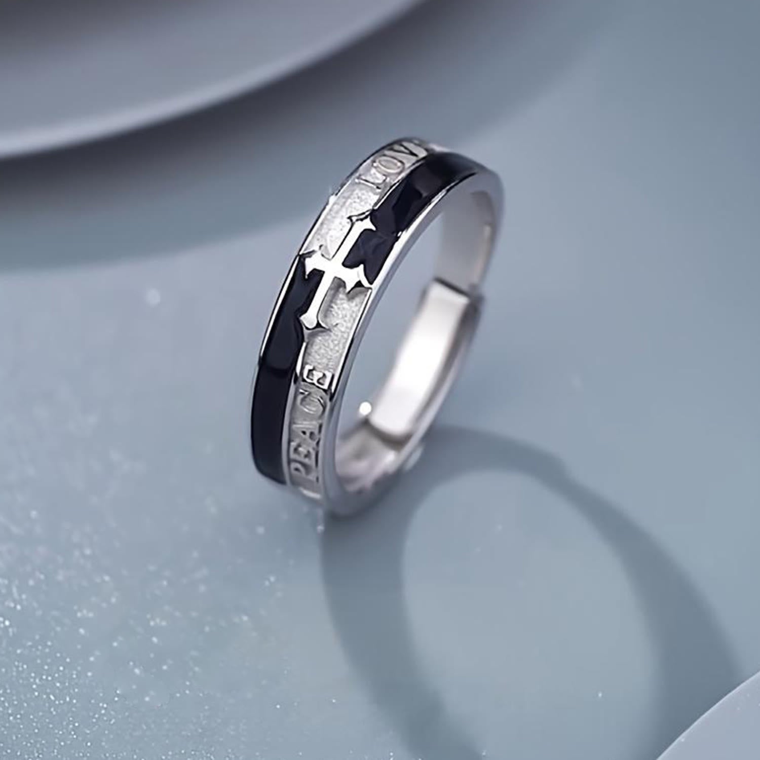 Mit seinem eleganten Band, das ein Kreuzemblem und die Worte „FRIEDEN“ und „LIEBE“ trägt, strahlt dieser Ring spirituelle Besinnung und unaufdringlichen Stil aus – und lädt dazu ein, in alltäglichen Momenten über glaubensbasierte Werte nachzudenken. - Langlebige Handwerkskunst, bleibende Symbolik