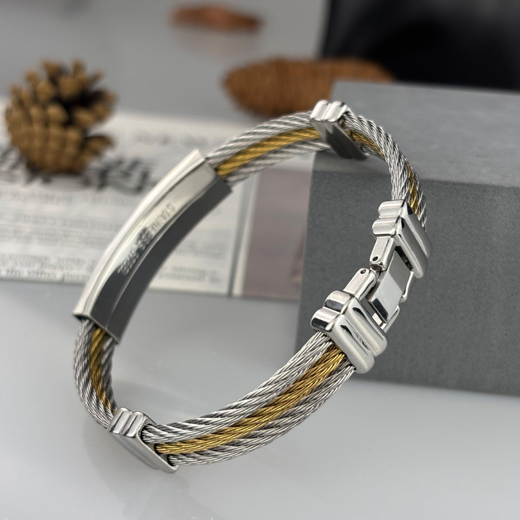 Wir präsentieren unser Cross Cable Armband – ein elegantes und zugleich bedeutungsvolles Schmuckstück, das Hingabe zum Ausdruck bringt, mit einem metallenen Kreuz und ineinander verschlungenen Kabeln für eine spirituelle Verbindung. - Heiliges Kreuz & Symbolik des modernen Kunsthandwerks