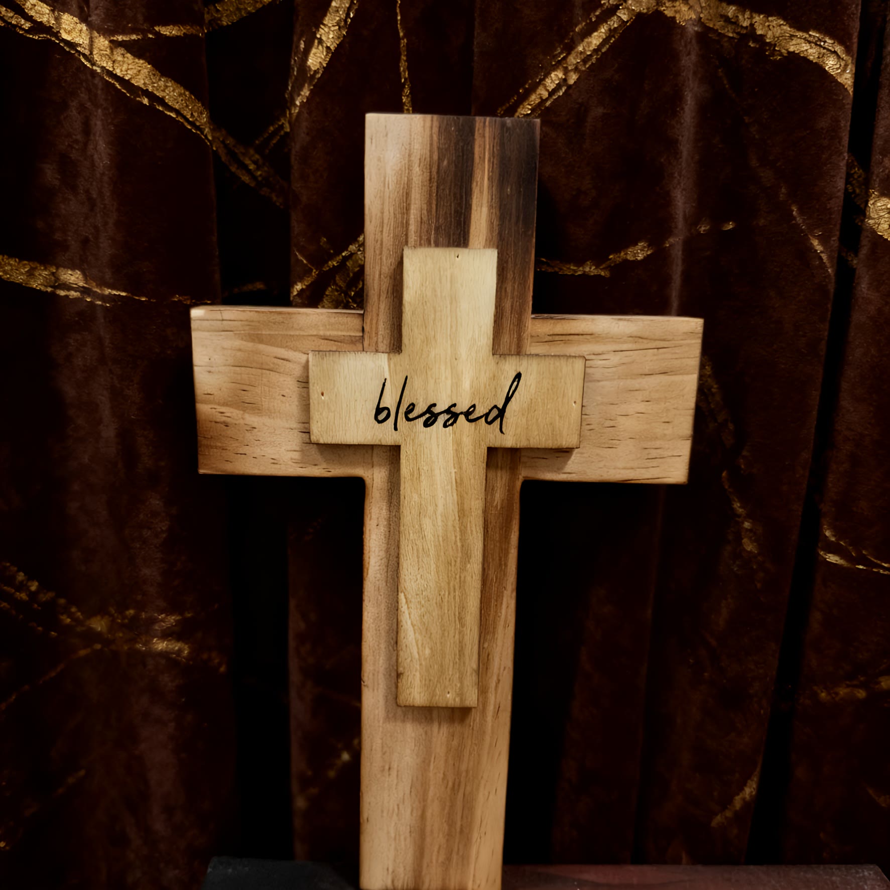 Christianartworkshop Mehrschichtiges Holzkreuz mit dem Schriftzug „Blessed“: Verkörpern Sie Glauben und göttliche Gnade in Ihrer Wohndekoration - image 1
