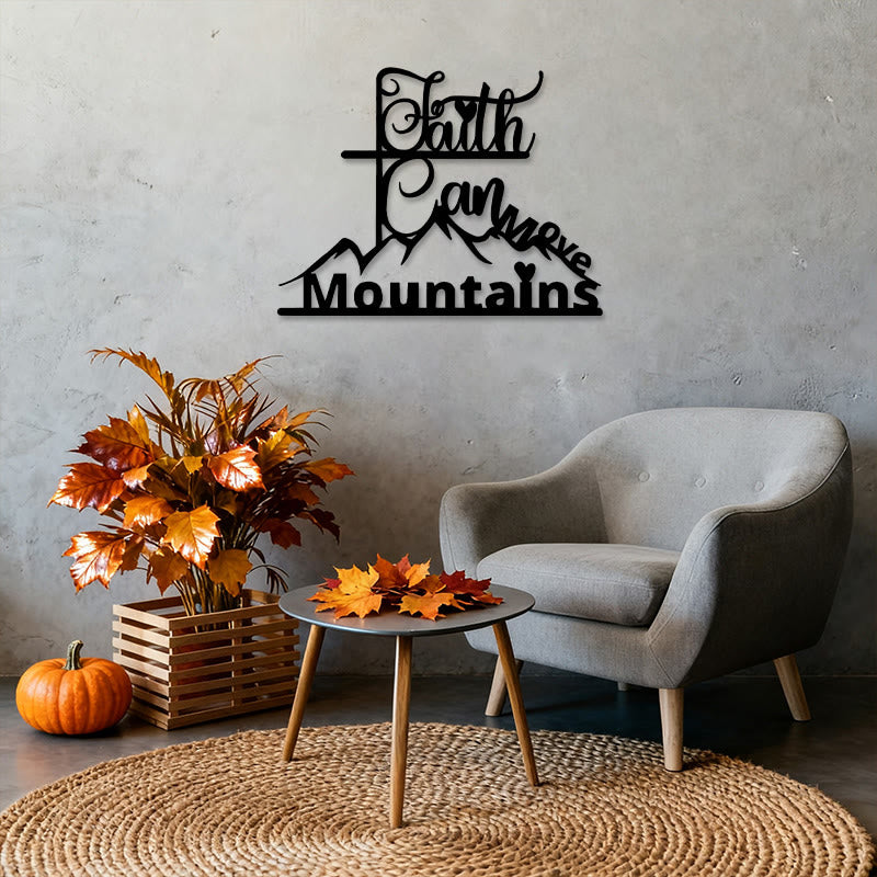 Mit der inspirierenden Botschaft „Glaube kann Berge versetzen“ und einem Kreuz- und Bergmotiv strahlt dieses Wandbild spirituelle Stärke und glaubensvolle Inspiration aus und lädt zur Reflexion über die Kraft des Glaubens im Alltag ein. - Aufwendige Metallkunst, bleibende Bedeutung