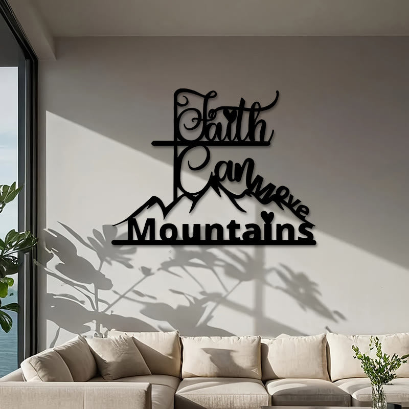 - „Glaube kann Berge versetzen – Kreuz aus Metall als Wanddekoration: Spirituelle Stärke und Inspiration durch Glauben“